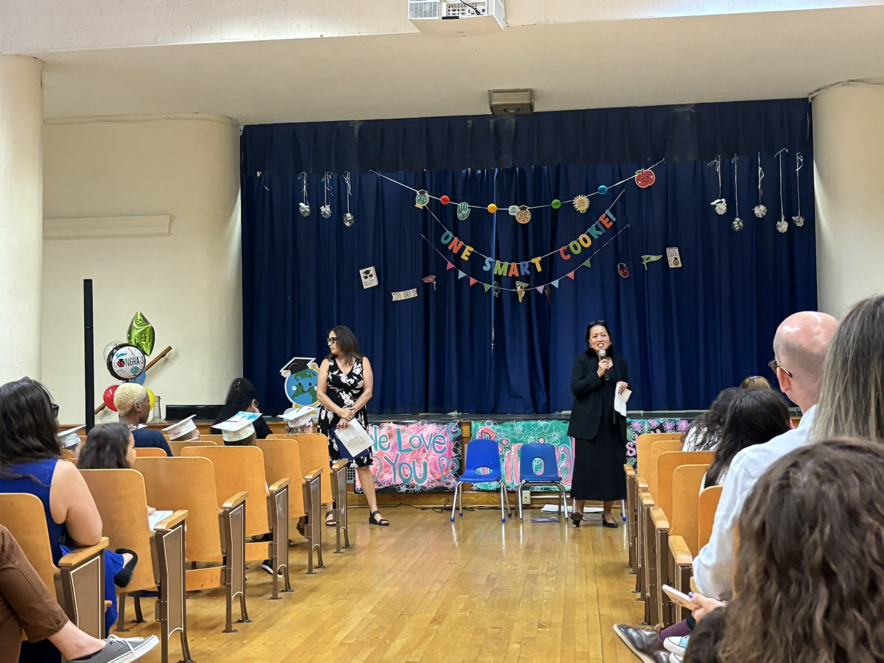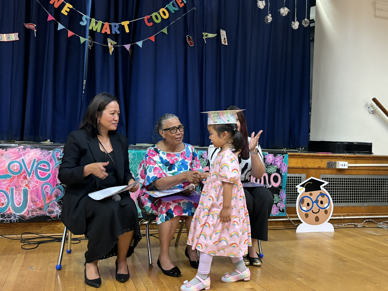 딸내미의 pre-k 졸업식이었다. 학교 강당에서 Pre-K 두 반만 참석해서 진행이 되는데, 그러다 보니 좀 더 이 아이들에 포커스를 맞춘 졸업식이라 더 좋았다. 연설 위주인 우리나라 졸업식 보다 뭔가 더 우선순위를 아는 느낌 ㅋㅋ