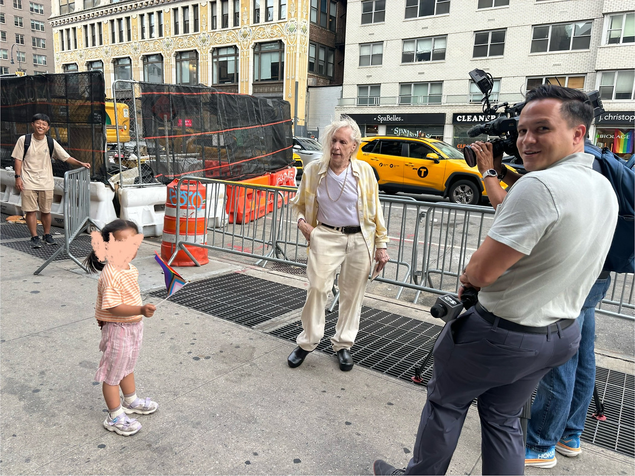 히트는 집으로 돌아오는 길에서 있었다. 여느 때처럼 딸내미는 길을 걸으며 바닥에서 나뭇가지 등을 주워 모았다. 그러다가 작은 무지개 깃발을 잡아서 신이 나서 흔들어 댔다. 딸내미가 좋아하는 막대기에 무지개까지 더해졌으니, 딸내미에겐 그 보다 멋진 수집품이 없었을 거다. 이건 또 어디서 난 건가 하고 주변을 훑어보니 앞에 인터뷰를 하던 사람들이 딸내미를 뚫어져라 봤다. 나는 그 사람들 물건인 줄 알고 가서 혹시 당신 거냐고 말을 붙였는데 아니었다. 단순히 퍼레이드 중 떨어진 깃발이었던 것 같고, 그 사람들은 딸내미가 좋은 그림이 되겠다 싶어서 쳐다본 것이었다. 미국의 주력 언론인 CBS 저녁 11시 뉴스 기자들이었는데, 얼결에 인터뷰를 했다. 딸내미만 찍나 싶어서 옆에서 구경하려고 폼을 잡았더니 리포터가 ‘프라이드먼스 행사에 대해 어떻게 생각하느냐’고 물었다. 긴장해서 약간 버벅거렸다. ㅋㅋ 혹시 나는 편집되었어도 딸내미는 꼭 나왔을 것 같은데 온라인에 올라오면 꼭 찾아봐야지.