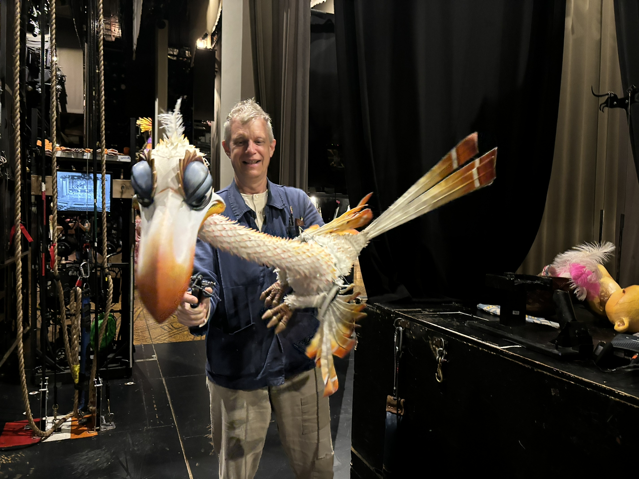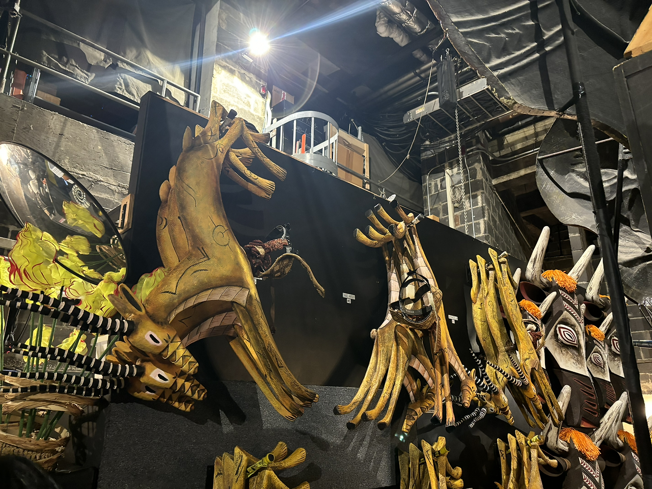 공연에 쓰인 동물 탈이나 모형들도 하나하나 다 봤다. 또 어떤 스텝이 주요 등장동물 중 하나인 새도 직접 움직이는 걸 보여주고 딸내미에게 만지게 해 줬다.