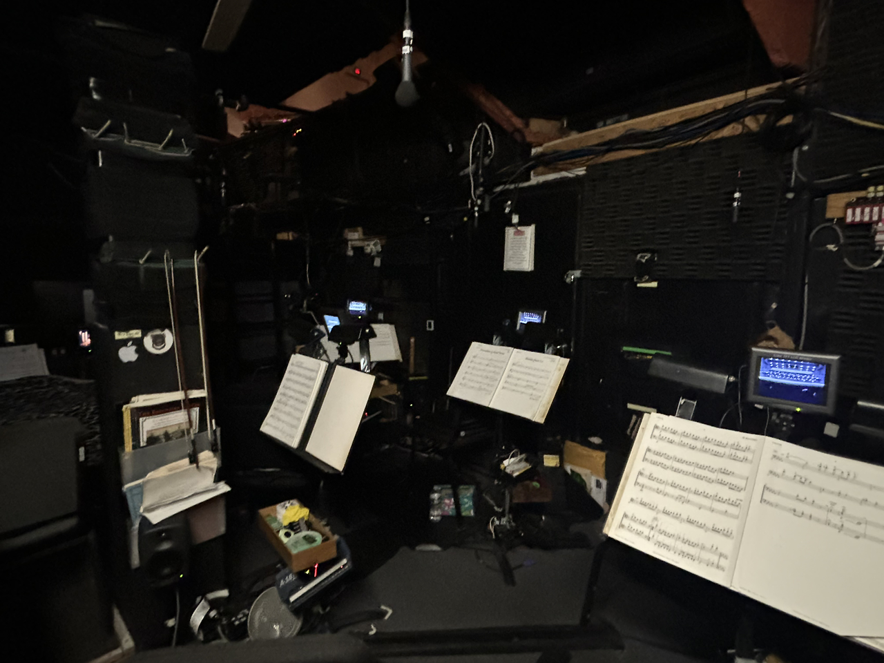 물론 연주 공간에도 들어가 봤는데, 굉장히 협소해서 놀랐다. 협소할 줄은 알았지만, 연주팀이 모여 있을 공간도 없어서 여러 군데 쪼개져 있을지 몰랐다. 지휘자도 잘 안 보일 수 있어서 악보대 위에는 지휘자를 비추는 작은 디스플레이도 있었다.
