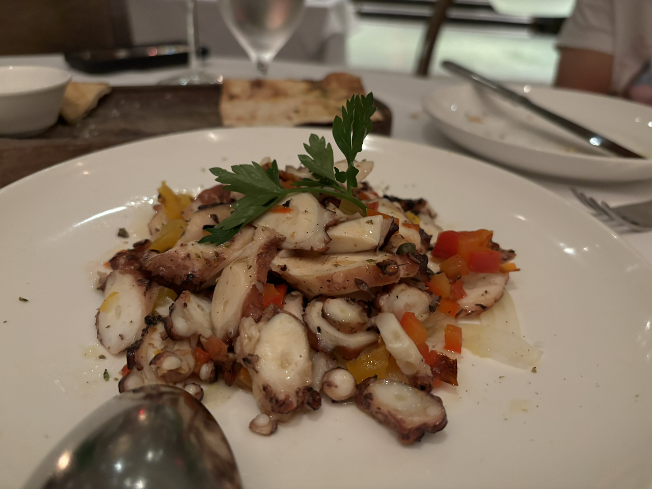 그리스 음식점이니 해산물을 위주로 먹었다. 마트에는 해산물이라고 해봤자 대부분 연어나 새우인데, 여기는 해산물 종류도 다양했고 진짜 신선했다. 미국 식당 음식은 웬만해선 짠데, 여기는 우리 입맛에 맞았다. 미식가인 고모부가 미국도 고급 식당은 재료가 신선해서 간을 세게 안 한다고 했다.
