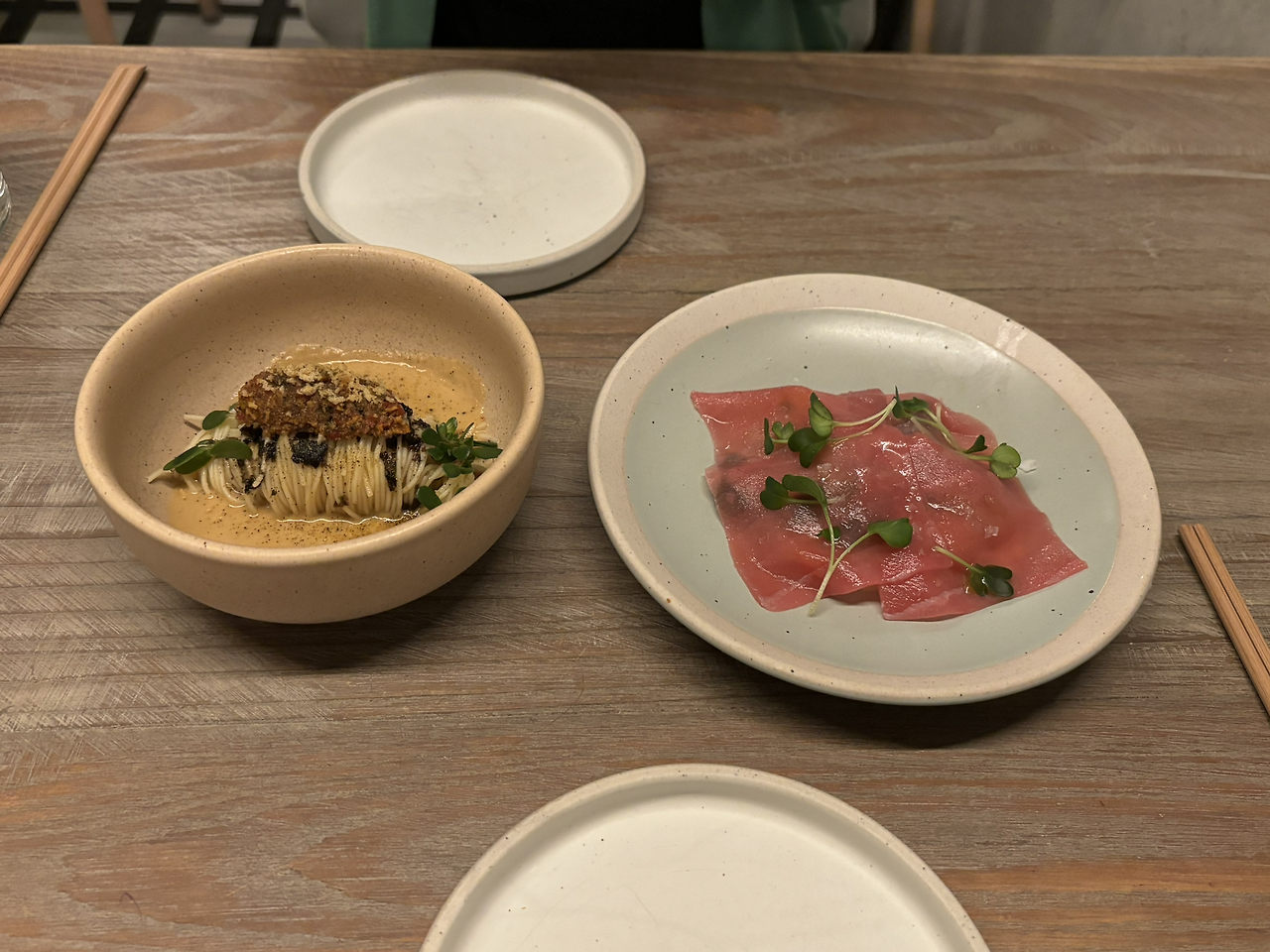퓨전 한식 다이닝에서 한식을 변형해 다루는 경우는 많지만, 이렇게 골고루 다양한 나라의 음식을 (인도 카레, 중남미 치미추리, 프랑스 소스 등) 접목시킨 건 새로웠다. 다문화 도시인 뉴욕의 특징을 살려 일부러 그런 건가 싶었다.