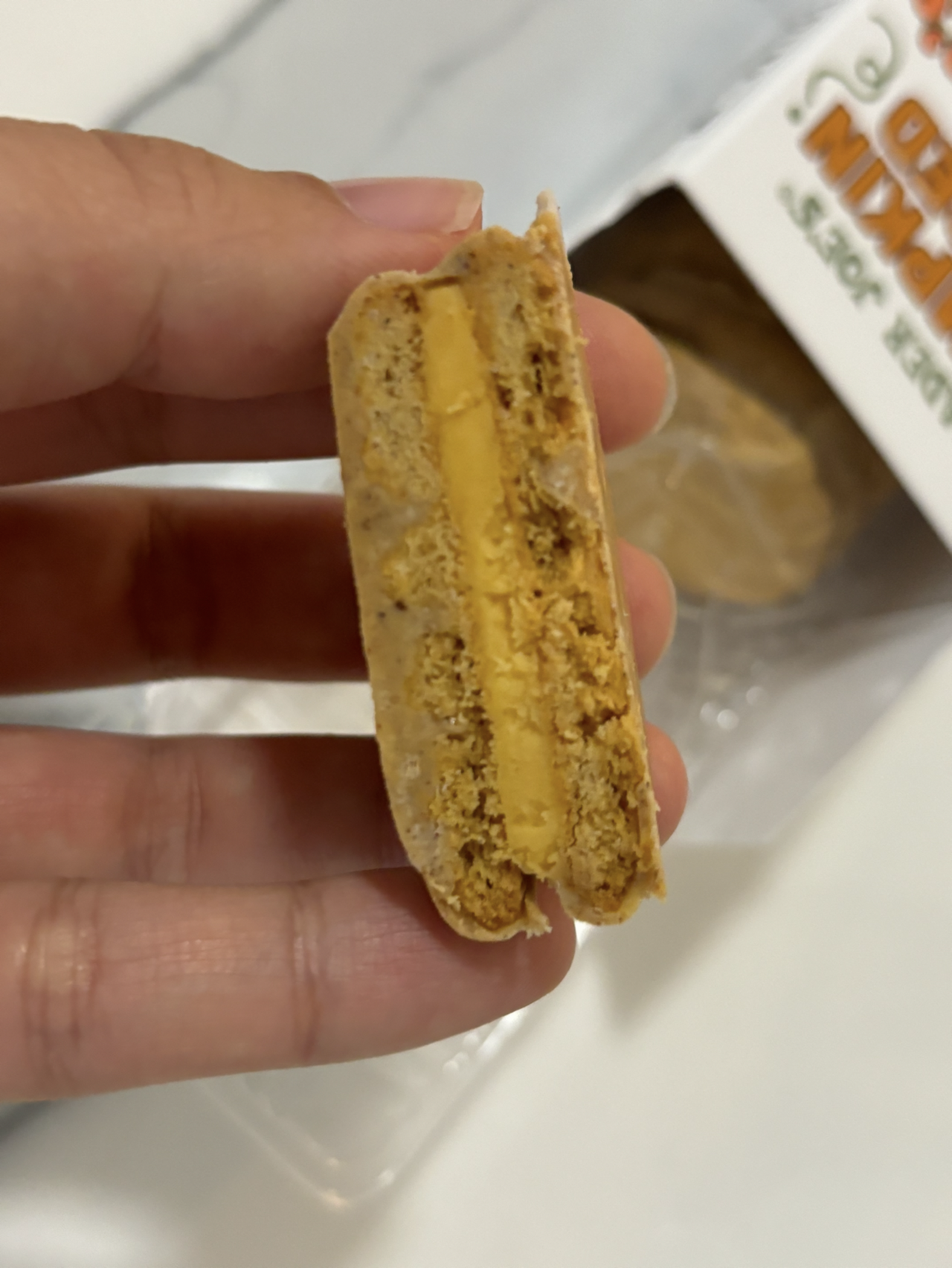 여기서부턴 순위는 없다. 펌킨맛 크림이 사이에 들어간 샌드인데, 겉은 요구르트맛 설탕 코팅이 되어있다. 단맛이 강해서 펌킨과 요구르트 맛은 뒷전이다. 단맛을 요구르트의 새콤함이 살짝 잡아주긴 하지만, 살짝 잡는다고 잡힐 단맛이 아니다. 내가 단 걸 못 먹는 편은 아닌데. 단 거 좋아하는 사람은 좋아하더라. 코팅이 되어 있어서 오픈하고 시간이 조금 지나도 (더워서 코팅이 녹지만 않으면) 샌드의 쿠키가 눅눅해지지 않는 건 장점.