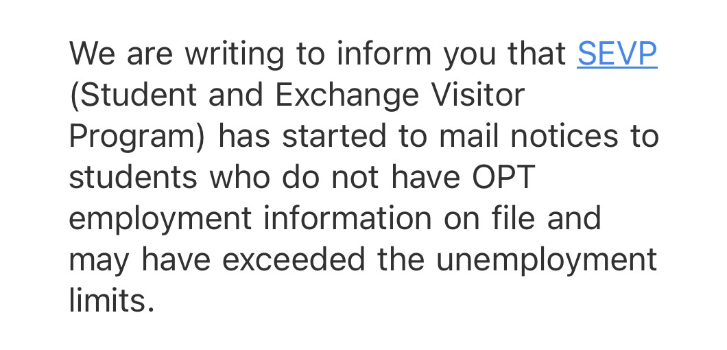 지금 우리는 졸업 후 OPT 신분으로 체류하고 있다. 대학원 졸업 후 1년 간 미국에 머물며 실습할 수 있는 자격인데, 일을 안 할 경우 90일까지 체류가 가능하다. 시작일을 10월 말로 설정해 둬서 우리가 출국하는 12월 말까지는 여유가 있었는데… 알고 보니 시작일이 9월 초로 되어 있었다?? 이렇게 되면 우리는 당장 12월 초에 출국을 해야 한다.