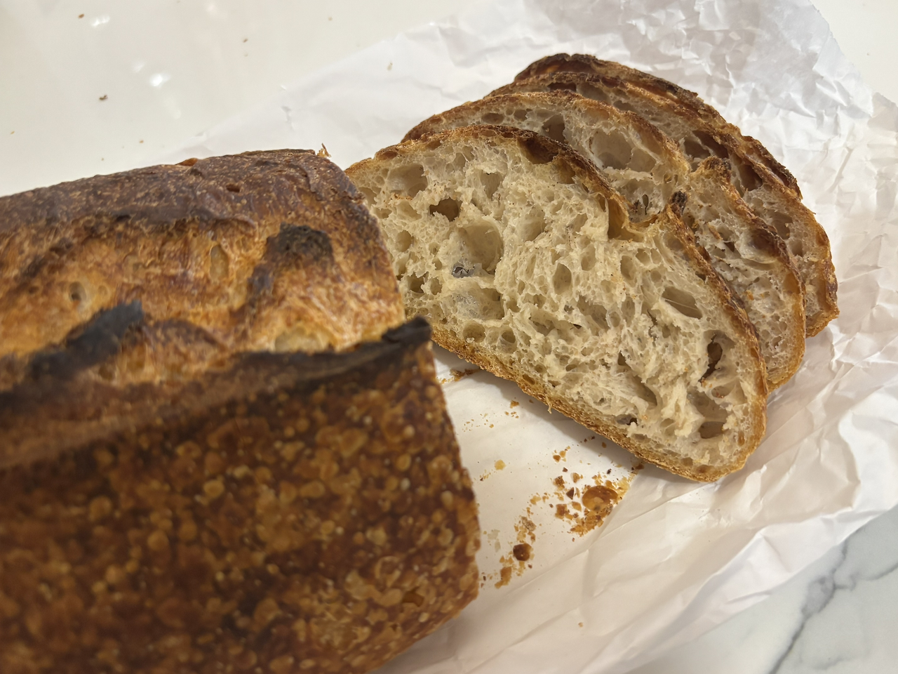 아직 딱 하나, Classic Batard를 먹어봤다. 밀, 발아 보리, 스펠트 가루로 만든 사워도우 빵이다. 겉의 크러스트는 정말 바삭하고 속은 보들보들하다. 사워도우 100%는 아닌지 사워도우 맛이 그렇게 강하지가 않아, 강한 사워도우 맛은 싫어하는 남편과 딸내미와도 잘 먹었다. 앞의 유제품 가게에서 산 가염버터를 드우움뿍 발라 먹으면 진짜 맛있다.