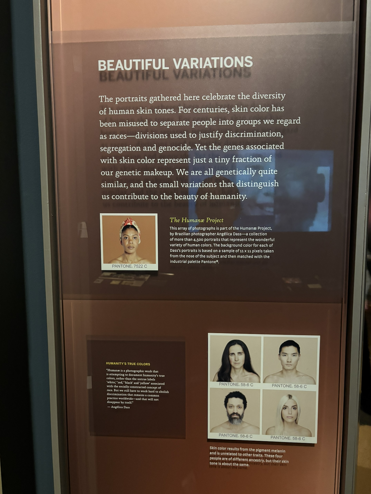 그래서 인류관도 차별적인 내용이 있지 않을까 싶었는데, (내 기억이 맞다면) 그런 논란 이후에 세워진 전시관이라 그런지 굉장히 조심하는 기색이 있었다. 우리는 모두 호모 사피엔스고 피부색이 다른 건 햇빛에 적응하는 과정이었음을 굉장히 강조하고 있었다. 인간이 다른 동물에 대해 특별하지 않은 것도 강조하고 있었고. 그런 조심하는 기색을 읽는 것 자체가 굉장히 재밌었다