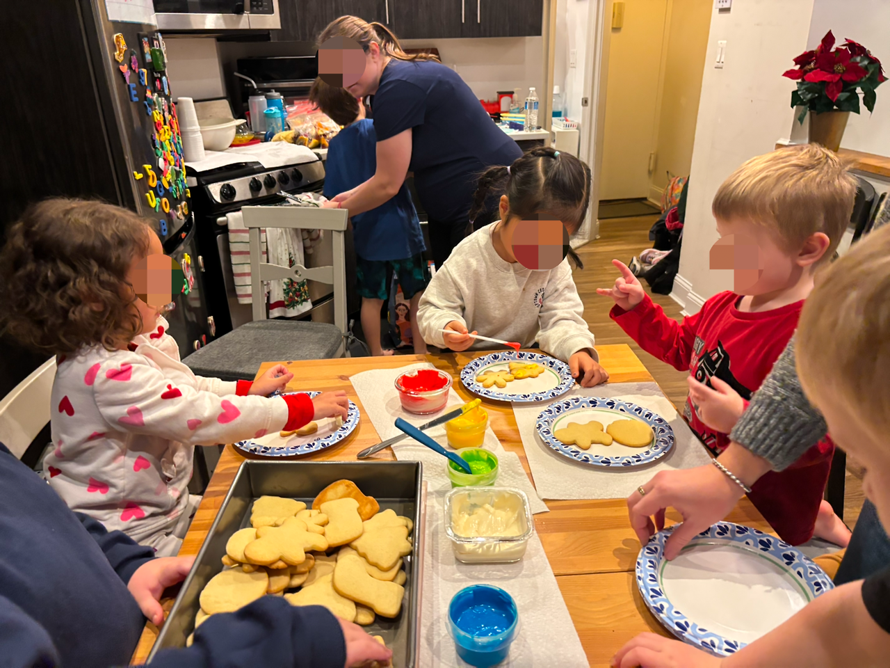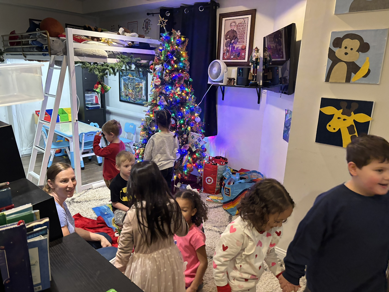 파티는 스티븐네와 파이퍼네에서 준비를 했다. 스티븐네가 장소와 음식, 우리를 위한 포토앨범을, 파이퍼네가 4-5개의 키즈 액티비티를 준비했다. 이 정신없는 연말에 각자 애들 챙기기도 바쁜데 진짜 감사한 일이다. (특히 스티븐네는 다섯째가 우리 둘째보다 어린 3개월인데. 진짜 육아의 신은 육아의 신이다.)