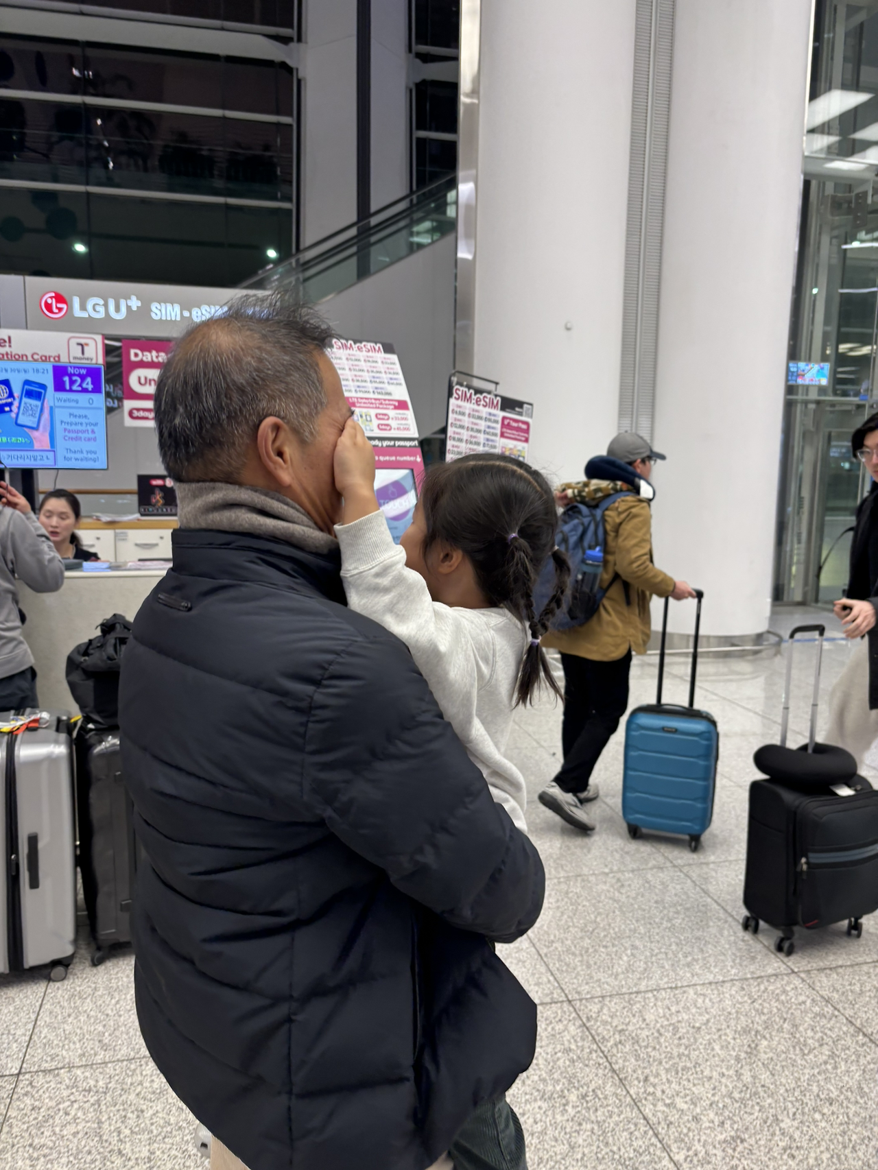 공항에 도착하니 부모님이 와계셨다. 짐이 많아 찾는데 시간이 걸려 아예 첫째는 먼저 세관신고를 통과해 부모님을 만나도록 했다. 부모님은 손녀들을 보고 녹아버리거나 눈시울이 붉어져 딸내미는 볼 새도 없었고 ㅋㅋ 그래도 먹고 싶던 순대와 영양찰떡을 가지고 오셨다.