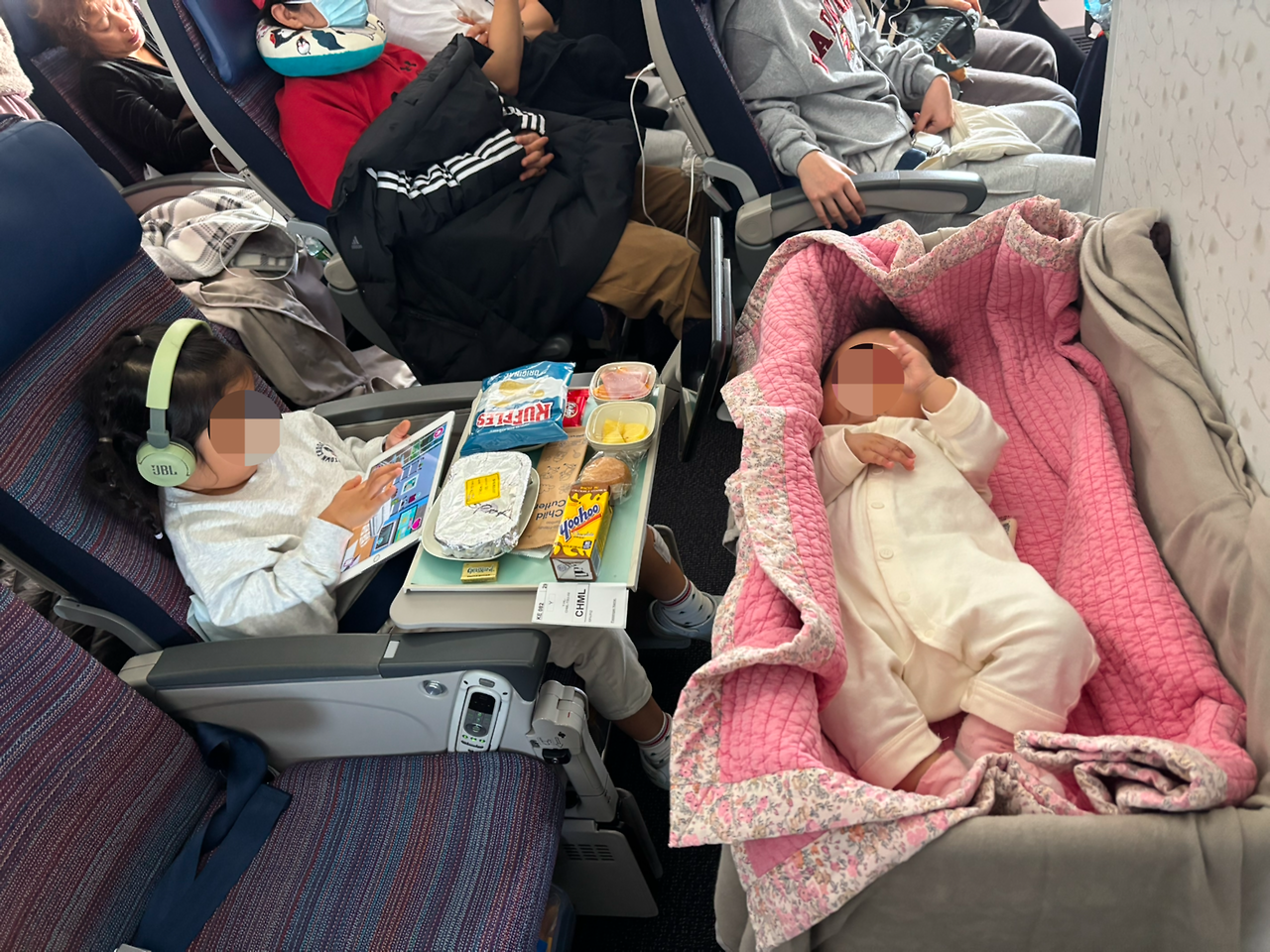남편은 둘째가 울어서 남들 폐 끼치지 않을까 걱정했다. 인스타그램을 봐도 아기가 비행기 타는 것에 대해 미국 인스타그램에서는 그래도 이해하는 댓글이 많은데 한국은 그래도 싫다는 반응이 많다. 아니나 다를까 우리가 타니 옆 라인의 한 여자는 계속 눈치 주듯 끊임없이 쳐다봤다… 하지만 둘째는 남편이 아기띠를 하니 거의 울지 않았다. 일반 승객 정도의 소음 밖에 내지 않은 것 같다. 남편 허리는 나갔겠지만 마음은 편하게 왔다. 첫째는 주로 동영상을 보고 중간중간 나랑 놀거나 한 바퀴씩 걸었고.