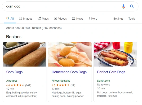 구글에서 콘도그를 검색하면 우리가 먹는 '핫도그'가 나온다.