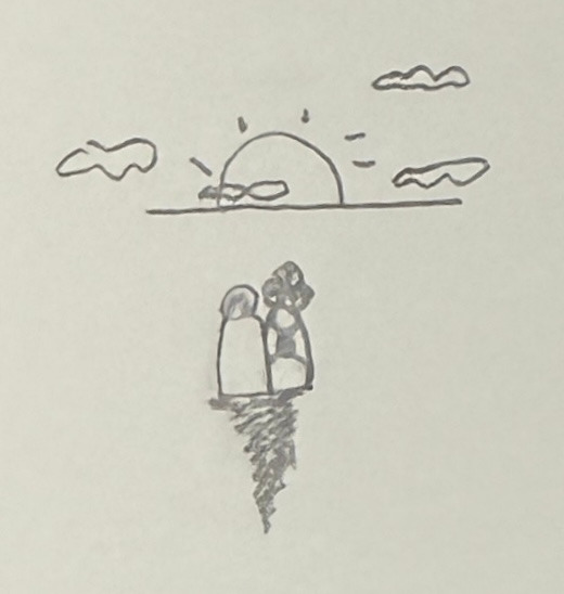붉은 노을을 등진