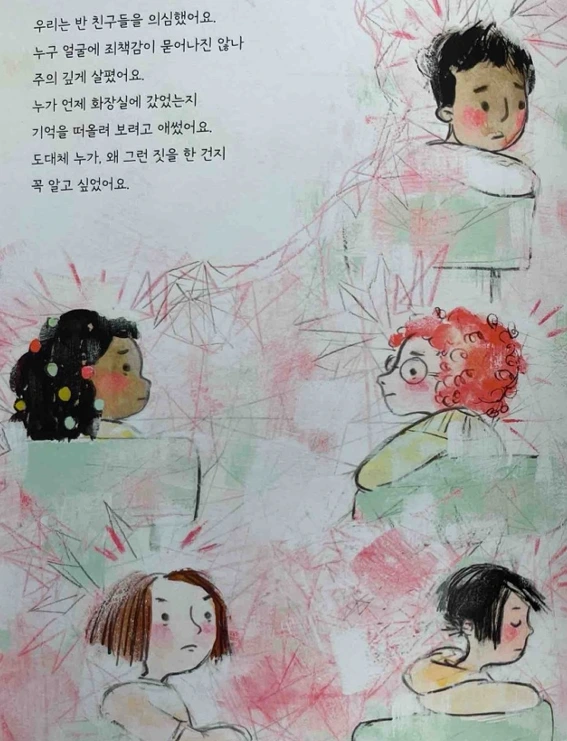 여자 화장실에서 일어난 일이기에 여자 친구들만을 불러 상황을 파악했던 교장선생님의 의심 어린 시선은