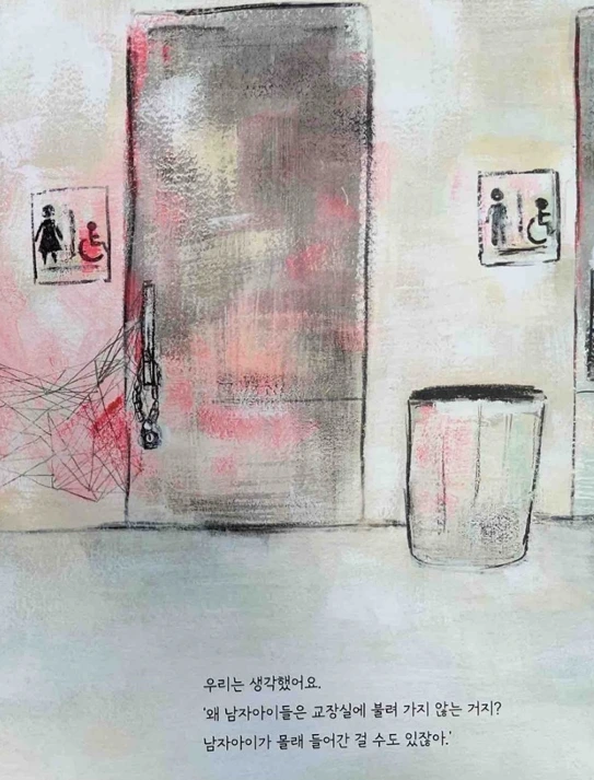 나쁜 말로 낙서되었던 벽을 모두 함께 그림으로 채우는 프로젝트로 과정을 통해 남자아이들도 여자 화장실을 들어와 모두 함께 생각을 전환하는 시간을 보내게 됩니다.