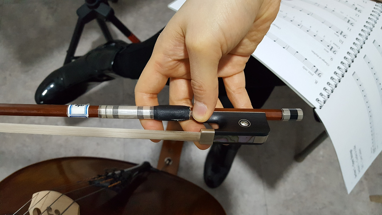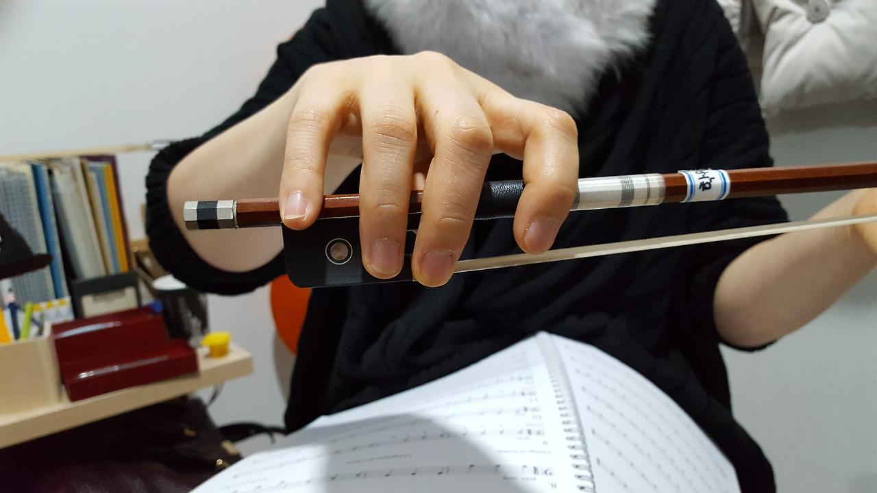 선생님은 볼펜 따위를 이용해 활잡는 법을 익혀오라 했으나 나는 저렴한 활을 하나 구입했다. 그 활로 실제 정확한 위치를 기억해가며 잡아본다.