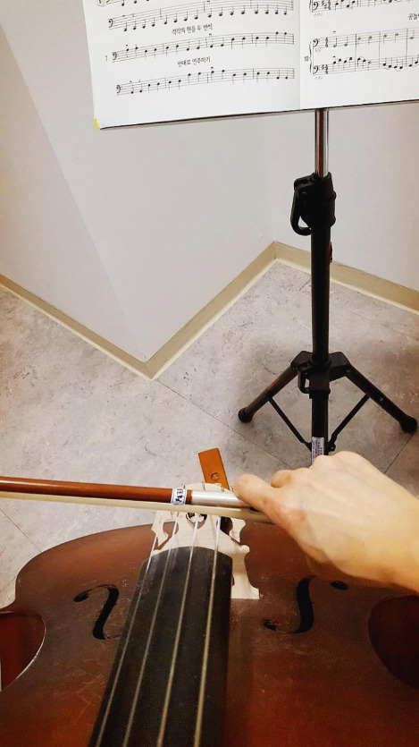 선생님은 활을 잡으려 하지 말고 활에 손가락을 가볍게 얹어, 내 체중을 실어서 현을 누르듯이 활을 밀거나 당겨 소리를 내보라 하는데, 별것 아닌 것처럼 보이던 활 하나를 제대로 잡고 마음대로 움직이기가 쉽지 않다.