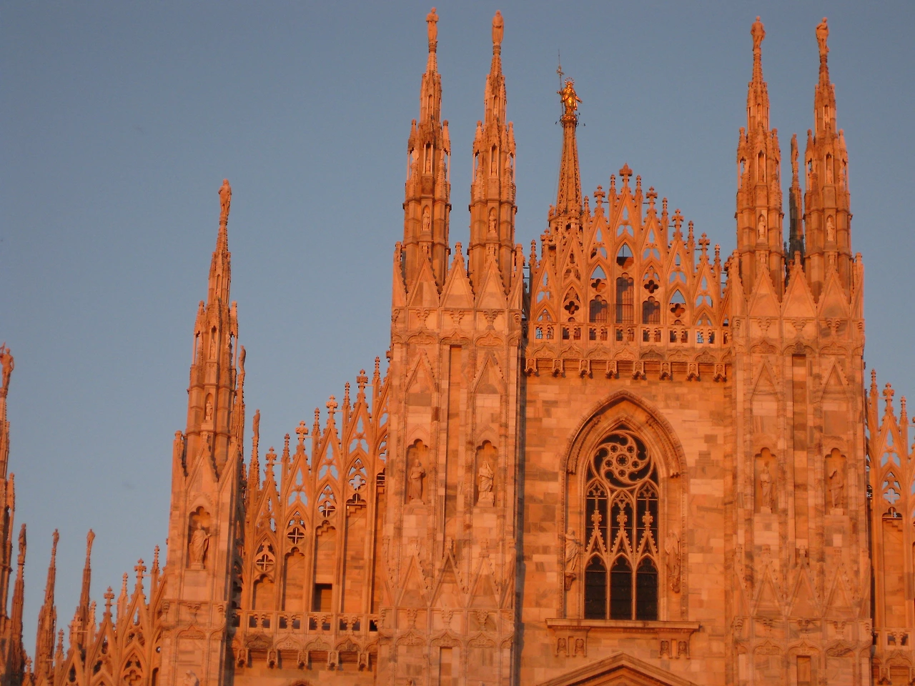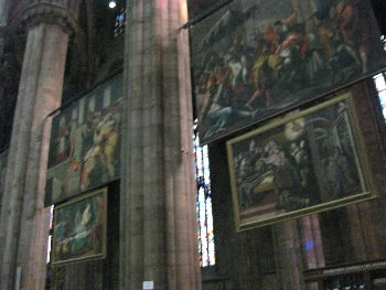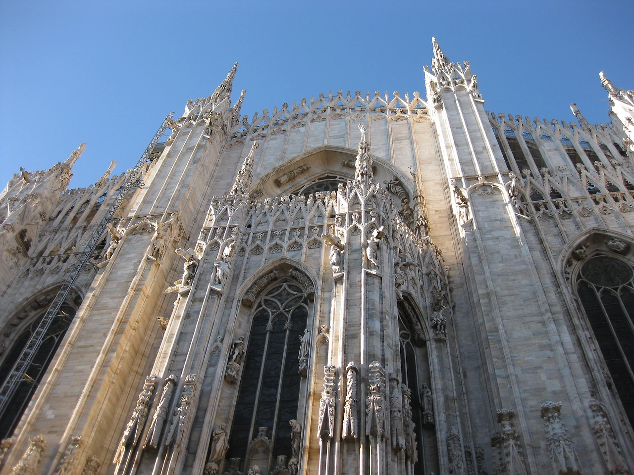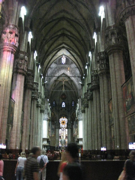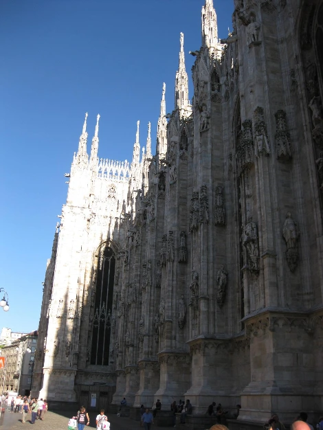 밀라노 대성당은 이탈리아의 고딕 건축 중 최대의 규모로서 전장 148m, 신랑 천장 높이 45m, 교차부 돔 위의 탑은 108m에 이른다.