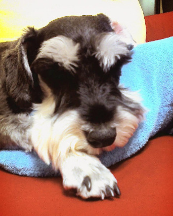 슈나우저라는 종의 특성상 지방종이 잘 생긴다는데 어릴때 어느날부턴가 온몸 이곳저곳에 지방덩어리같은 멍울이 혹처럼 생겨나기 시작했던 것이다. 그중에 가슴에 생긴 한 덩어리가 점점 커져서 아기 주먹만큼이나 되었다. 의사와 우리는 모두 일단 지켜보고 있었다. 악성은 아니므로 서둘러 제거할 필요는 없으나 어느 정도 이상 커진다면 그때 제거해도 늦지 않기 때문이었다.