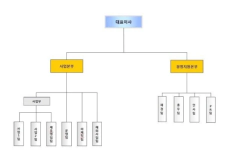 구멍가게가 아닌 바에야 어느 사업체든 그 곳의 운영과 경영체계에 따른 인적구성에 관한 조직도가 갖춰져있게 마련이다. 이를테면 이런것.