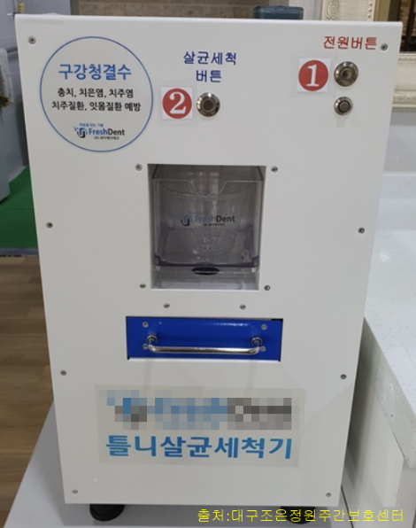 검색을 해서 확인한 결과, 틀니는 사용자 본인이 스스로 세척하고 있었을 뿐더러 서비스차원에서 틀니세정소독기를 설치해서 그것조차 스스로 할 수 있도록 유도하고 있었다. 더불어 틀니를 어떻게 관리하는 것이 위생적인지 계속적인 교육을 실시하고 있었다.