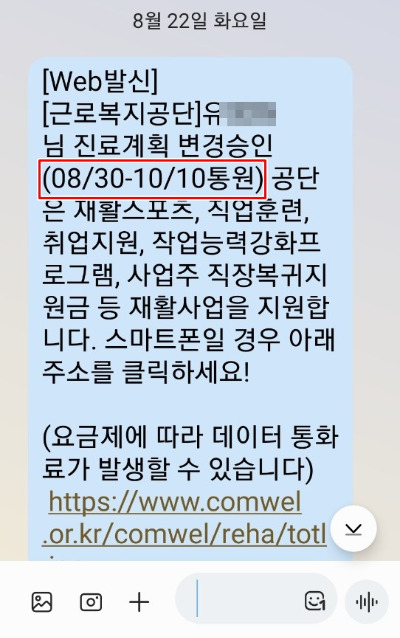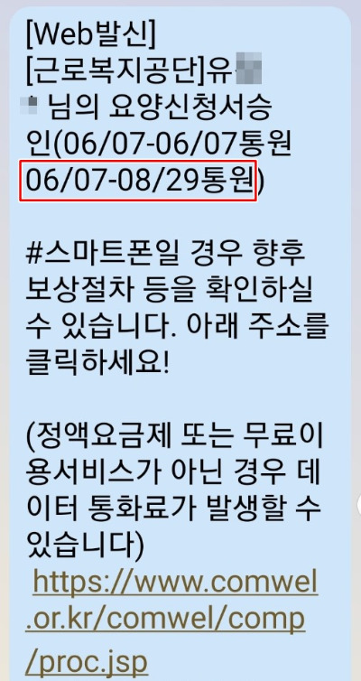 1차 8/29까지 산재 승인-10/10까지 연장 승인 안내문