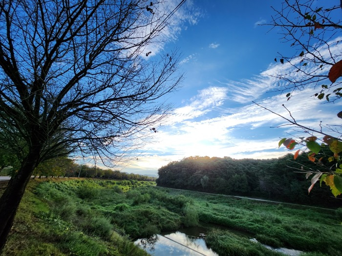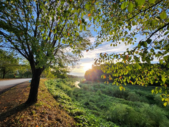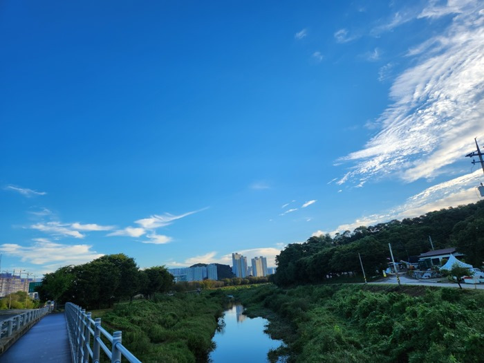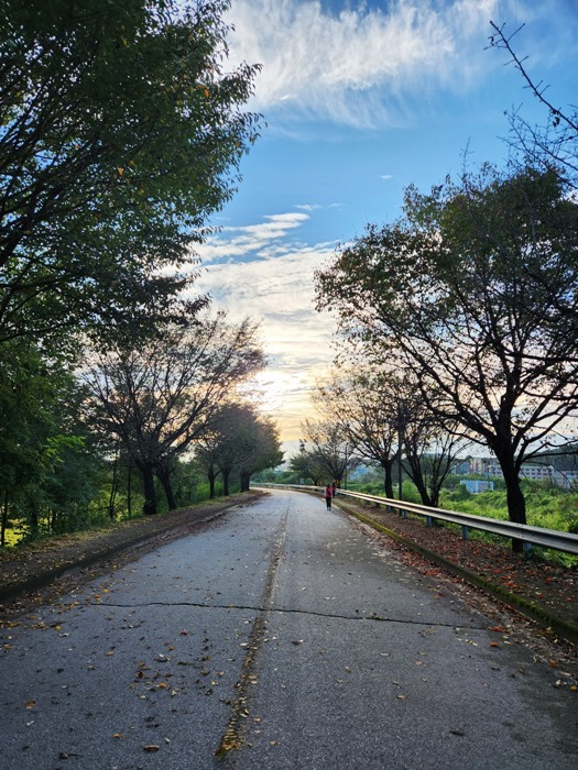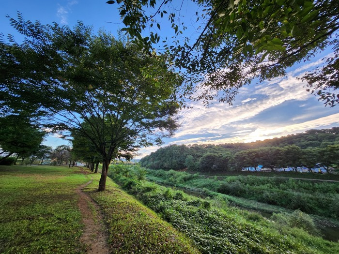 천변 산책로 양편에 늘어선 많은 벚나무들은 여전히 무성한 푸른 잎을 뽐내며 서있다.