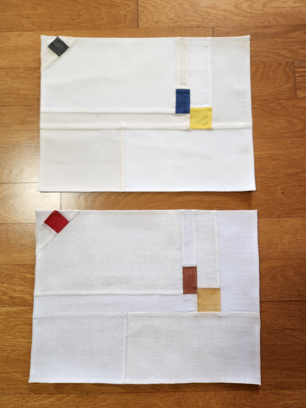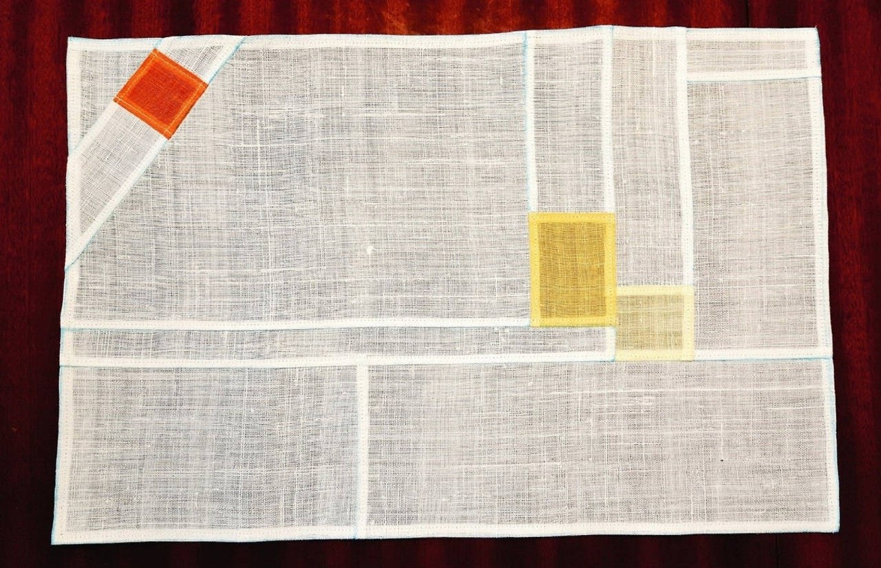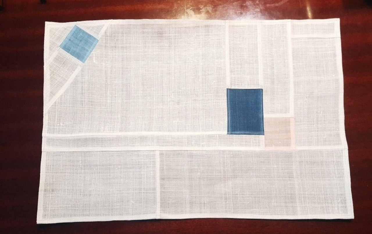 이것들은 모시원단만으로 만든, 홑겹이라 테이블에 놓았을때 바닥의 색감이 희미하게 비치고 조각난 면분할 이미지가 보다 선명하게 보인다는게 특징이다.