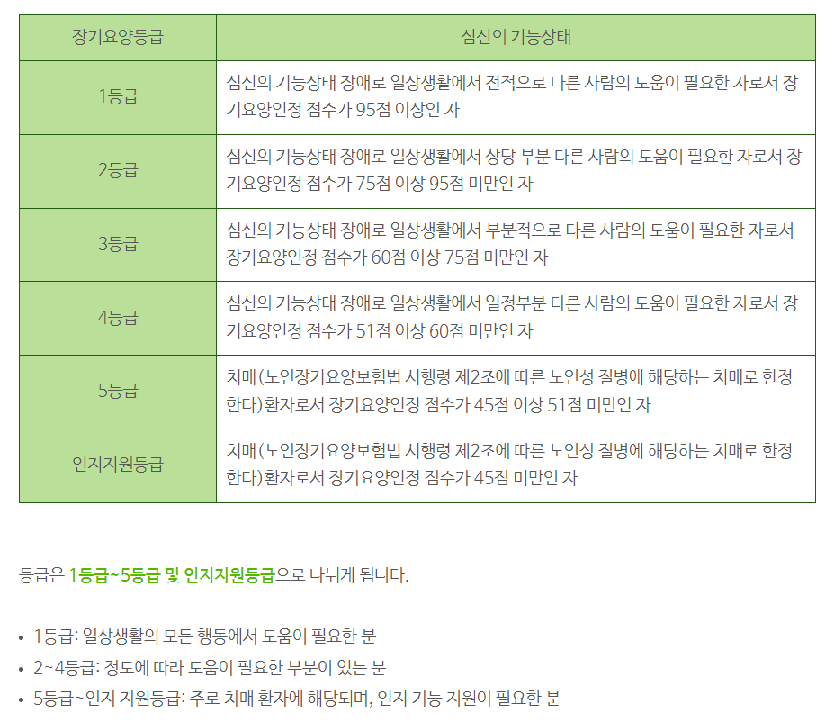 출처 :장기요양등급별 혜택 노인장기요양등급 신청방법 : 네이버 블로그
