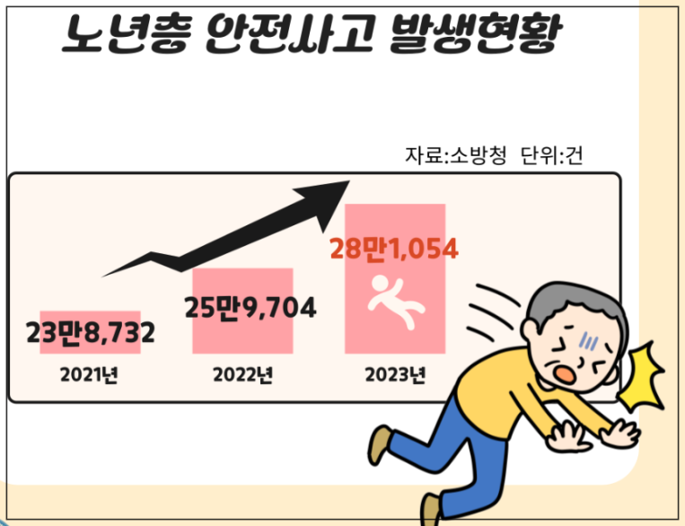 요양원에 계신 어르신들이 가장 주의해야할 일은 낙상이다. 물론, 낙상은 요양원에서만 주의할 게 아니다. 나이 7,80세가 넘어가면 뼈가 약해지게 마련이 아닌가. 신체활력이 떨어지니 움직임도 줄어들고 운동량도 감소하여 매일 헬스클럽에서 의도적으로 근육운동을 하지 않는 한, 근육량은 줄어들고 결국 잠시잠깐의 부주의한 순간에 사고로 이어질 수 있다.