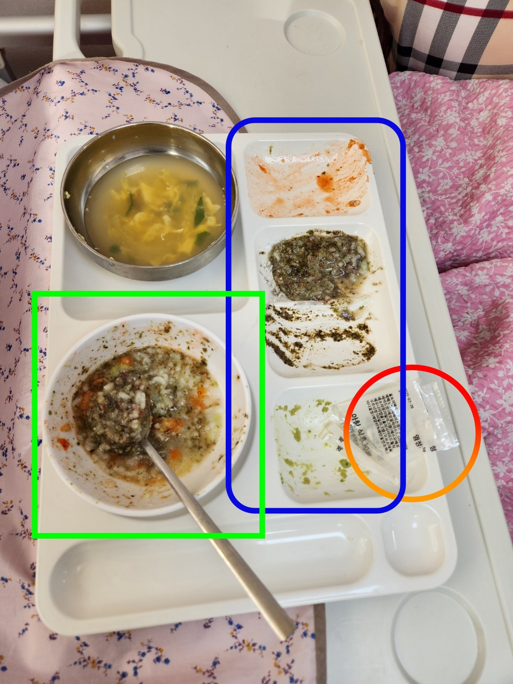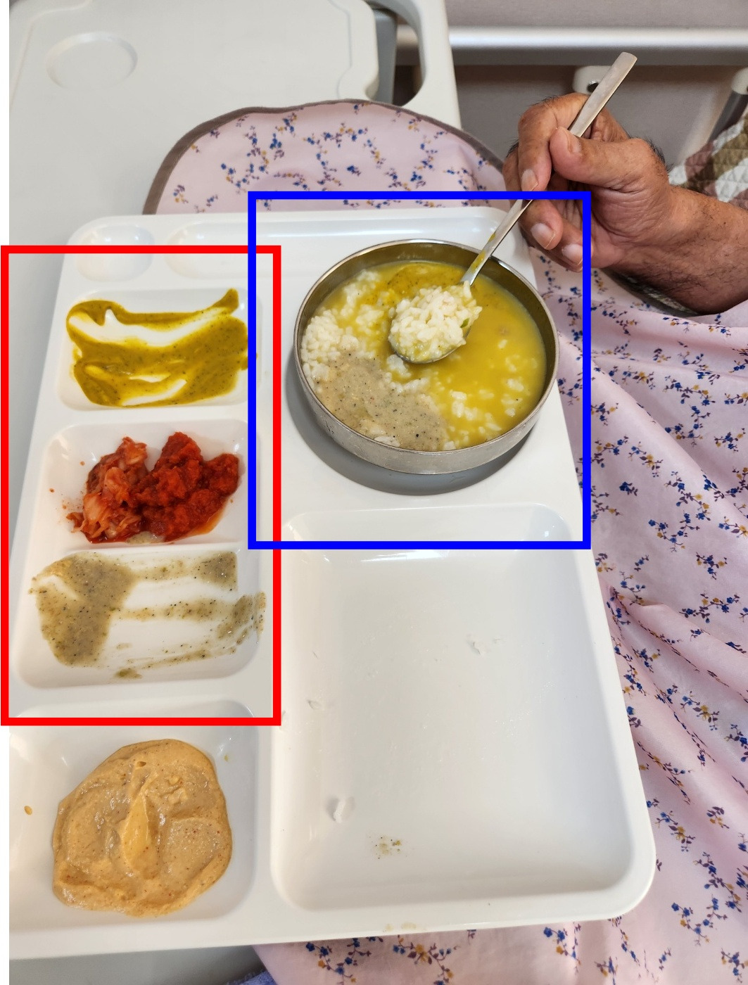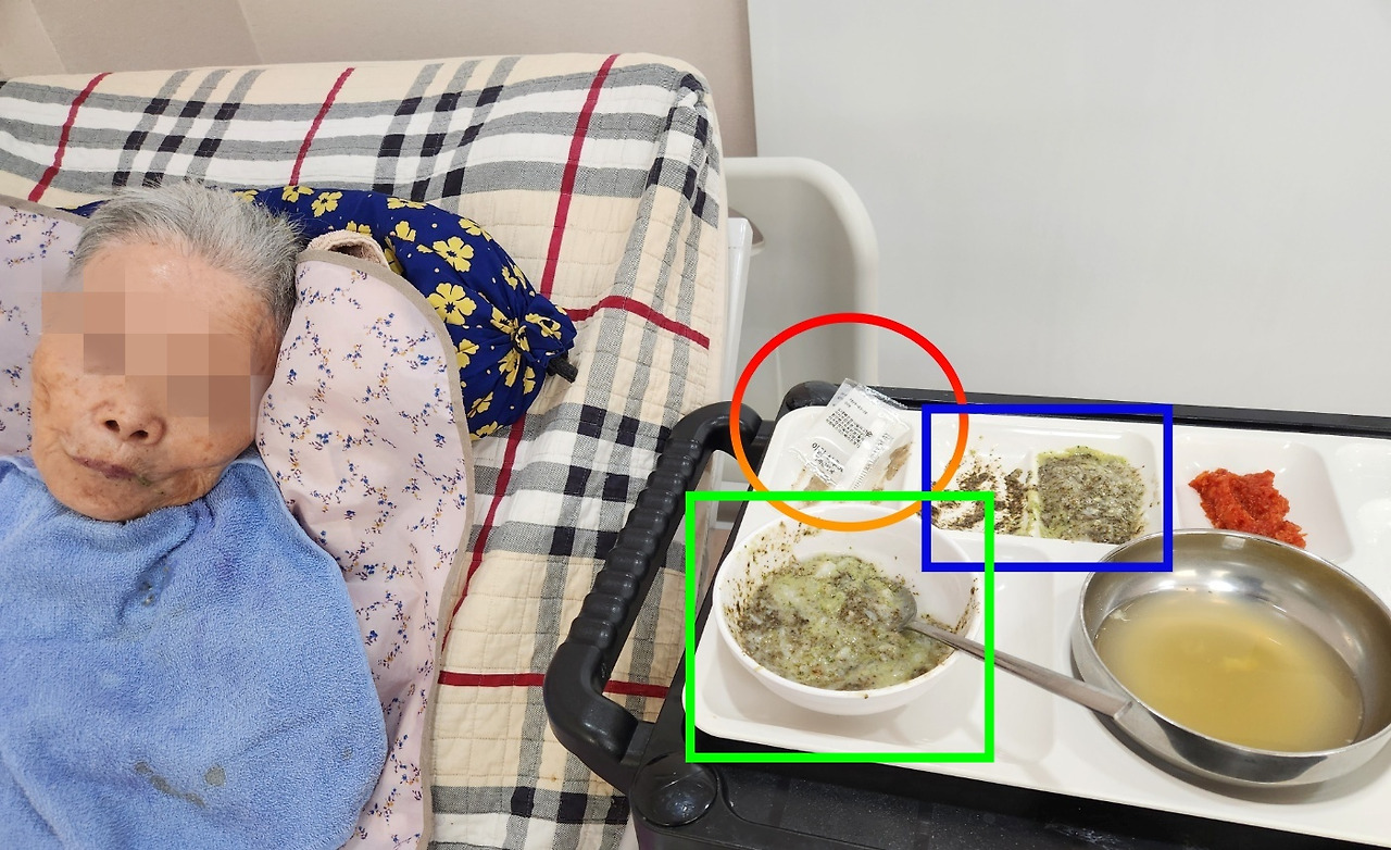 위 사진들은 내가 아침식사도움을 드리던 어느날 며칠에 걸쳐 확인한 상태인데, 내가 아닌 전날의 야간근무자 A가 해당어르신의 식사를 돕는 중이었다. 사실 이 시간은 무척 바쁜시간이다.