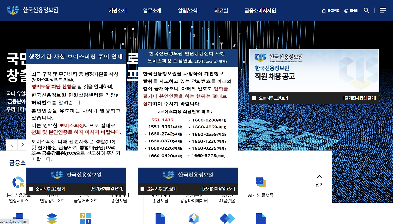 통화가 종료된 후, 우리는 한국신용정보원 사이트에도 들어가보았다.