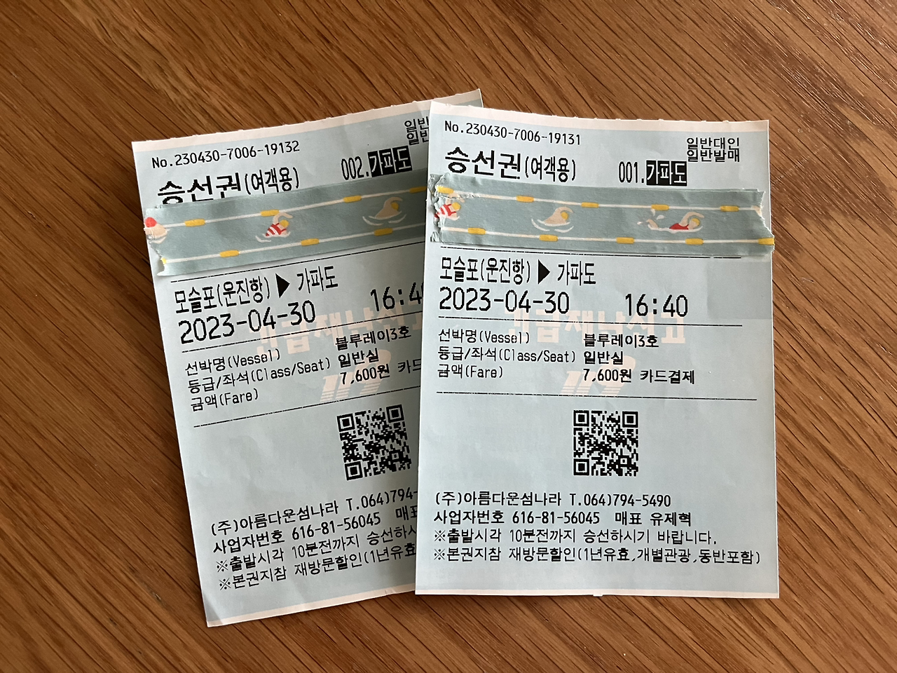 가파도는 제주 본섬과 이어지지 않은 섬이라 파도가 심하거나 바람이 많이 부는 날에는 가파도로 입도하는 여객선이 운항되지 않는다. 나와 짝꿍은 제주에 갈 때마다 가파도에 가는 것을 기본값으로 두지만 날씨에 따라가지 못하는 날이 생기기도 했는데 경험적으로 50대 50의 확률이었던 것 같다. 올봄 짝꿍과 일주일간 제주도 여행을 계획하면서 확인한 일기예보에 따르면 4월 30일에 가파도에 입도해서 다음날인 5월 1일에 나오는 것이 가장 안전할 것 같았다. 운이 따랐는지 5월 3일부터 사흘간 1,000mm가 넘는 폭우가 쏟아졌다.