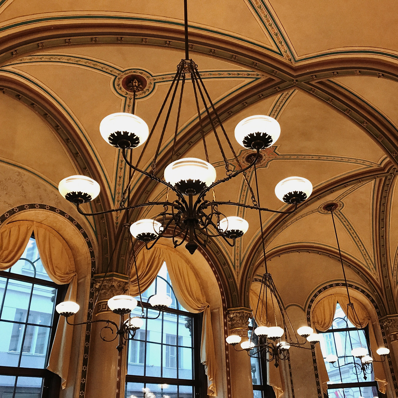 일곱 시가 되기 전 해가 뜨는 것을 바라보면서 빈 시내로 걸어 나왔다. 약간 코가 시린 완연한 가을 날씨였다. 출근하기에도 이른 시간인지 길에도 사람이 없었다. 20여분을 걸어 카페 센트럴 (Cafe Central)에 도착했다. 오픈 시간이 일곱 시라 이른 아침 시차 적응을 못해 방황하는 동북아인 가족을 맞아주었다. 이미 꽤 많은 여행자들이 아침식사를 하고 있었다. 패스츄리와 요거트, 커피, 주물팬에 구워 나오는 베이컨과 달걀 모두 기대 이상으로 맛있었다. 의외로 입이 짧은 아빠가 열심히 잘 드셔서 다행이었다. (커피에 설탕을 세 스푼 정도 크게 넣어 맥심커피처럼 만들어 드리는 것이 포인트) 저녁시간에 있다는 피아노 공연은 보지 못해 아쉬웠지만 고풍스럽고 분위기는 만족스러웠다.