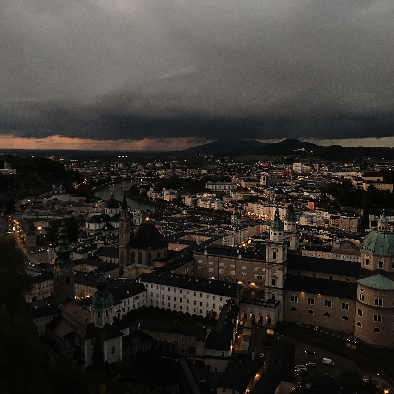 피로를 조금 풀고, 호엔 잘츠부르크 성으로 걷기 시작했다. 걸어서 넉넉히 30분 정도면 성곽에 갈 수 있다고 구글맵에 나왔다. 엄청난 오르막이 계속되어서 녹초가 되어버렸다. 성 위에 올라 잘츠부르크 시내의 야경을 마음에 남겼다. (푸니쿨라 타는 것을 추천합니다) 내가 상상했던 잘츠부르크는 미라벨 궁전과 알록달록한 정원에 빛이 부서지고, 모차르트의 음악이 어디서나 흘러나오는 가볍고 밝은 도시의 느낌이었는데, 그런 것들을 보지 못했지만 전혀 아쉽지 않았다.