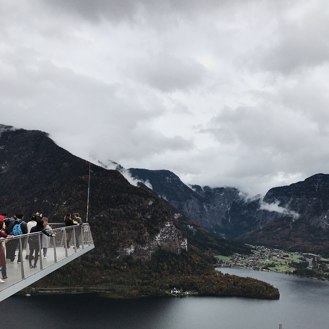 호수에서 배를 꼭 타고 싶었는데 비가 와서 운행을 하지 않았다. 그냥 떠나기엔 아쉬워서 전망대에 오르기로 했다. 푸니쿨라를 타고 올라가면 소금광산과 전망대가 있는데, 우리는 전망대에서 구경만 했지만 소금광산도 꽤 재미있어 보였기 때문에 여유가 있다면 들르는 것도 괜찮겠다. 다행히 비가 그쳐서 맑은 시야로 호수를 내려다볼 수 있었고, 무엇보다도 단풍이 막 들고 있어서 나무들이 무척 아름다웠다. "안 올라왔으면 후회했겠다"라고 할 만큼 뷰가 시원했다. 그리고 푸니쿨라는 언제 타도 재밌어.