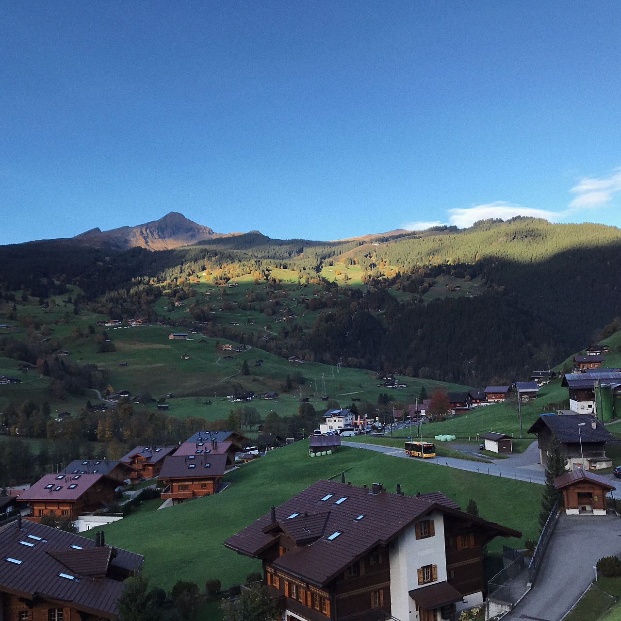 높은 곳에서 보니 호수 사이에 있다는 뜻의 인터라켄이 명확하게 보였다. 바람을 타며 유유히 비행을 하다가 소위 "빙글빙글"이라고 말하는 그야말로 빙글빙글 팽이처럼 돌면서 급강하를 몇 번씩 하는데, 너무 어지럽고 무서웠지만 레저를 즐기는 타입인 척 하며 그만하라고 말을 못 했다. 아빠의 파트너는 "빙글빙글 얼마나?"라고 물어보았고 갑작스러운 질문에 당황한 아빠는 "미디엄!"이라고 대답했다고 한다. 대충 뜻은 통했다는 후일담. 숙소가 있는 아델보덴으로 이동하니 해가 모두 져서 깜깜했다. 한국인이 아니면 곧 문 닫을 것만 같은 호텔에서 룸서비스를 시켜 저녁을 먹고, 어제와는 사뭇 다른 푹신한 고급 침구에 파묻혀 잠이 들었다.