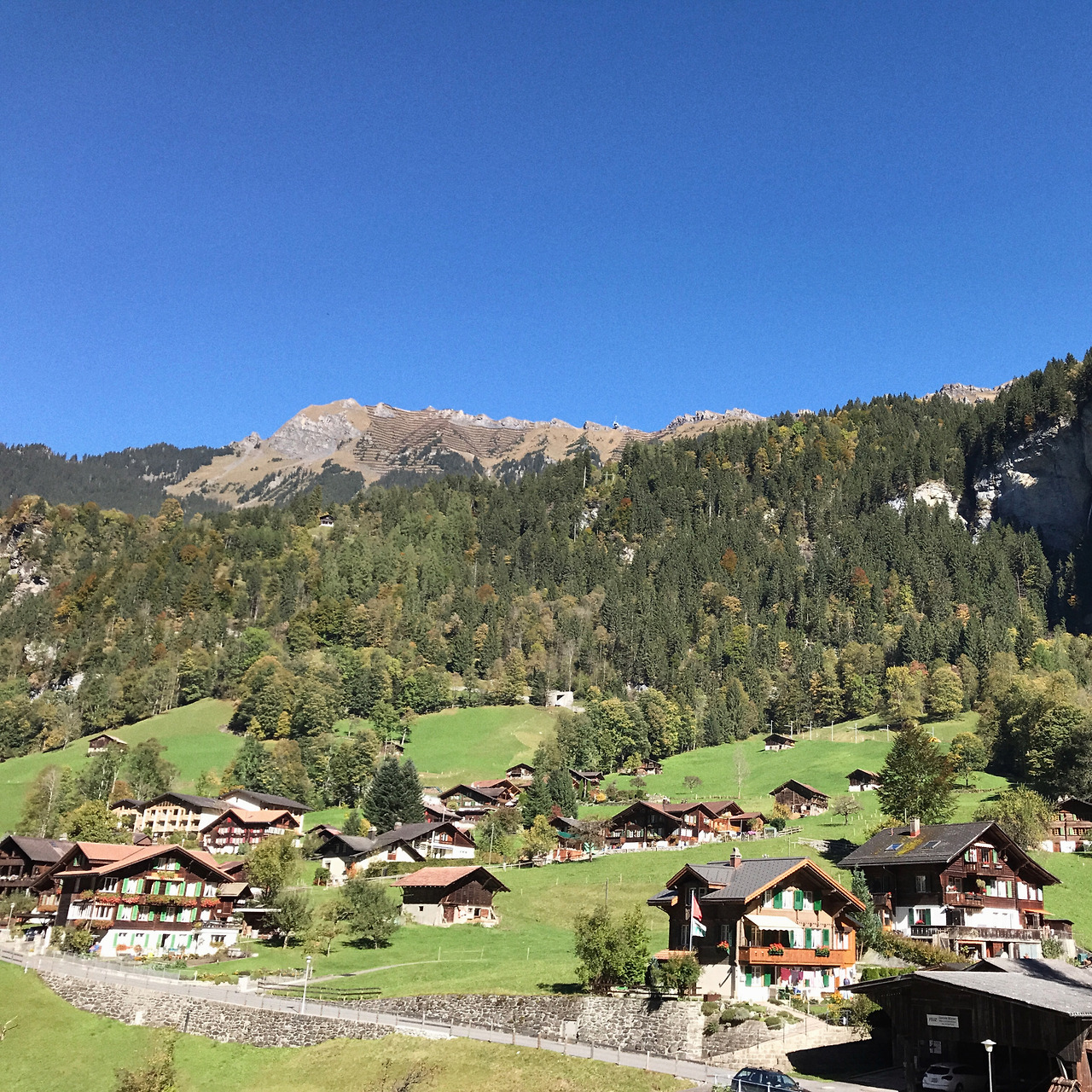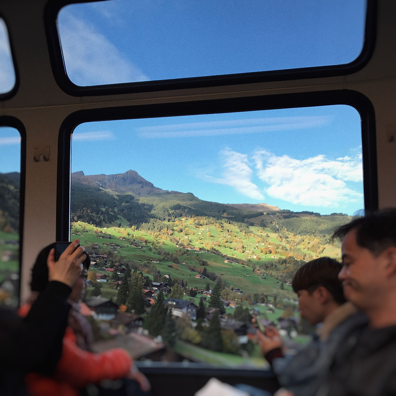 아침 일찍 일어나 간단히 차려진 조식을 먹고 서둘러 인터라켄 기차역으로 갔다. 창구의 대기 줄이 길어서 바로 다음 열차는 타지 못하고 조금 더 기다려야 했다. 한국에서 티켓은 미리 구매하여 바우처와 티켓을 교환하고 시간표에 대해 간단히 설명을 들었다. 한 열차에 많이 욱여넣어 태우지는 않는지 대부분 자리에 앉아서 가는 분위기였다. 오후 일정이 기차 시간 때문에 어그러질까 봐 걱정이 많은 딸내미 가이드는 무사히 네 가족이 옹기종기 자리를 잡고 앉은 후에야 한시름을 놓았다.