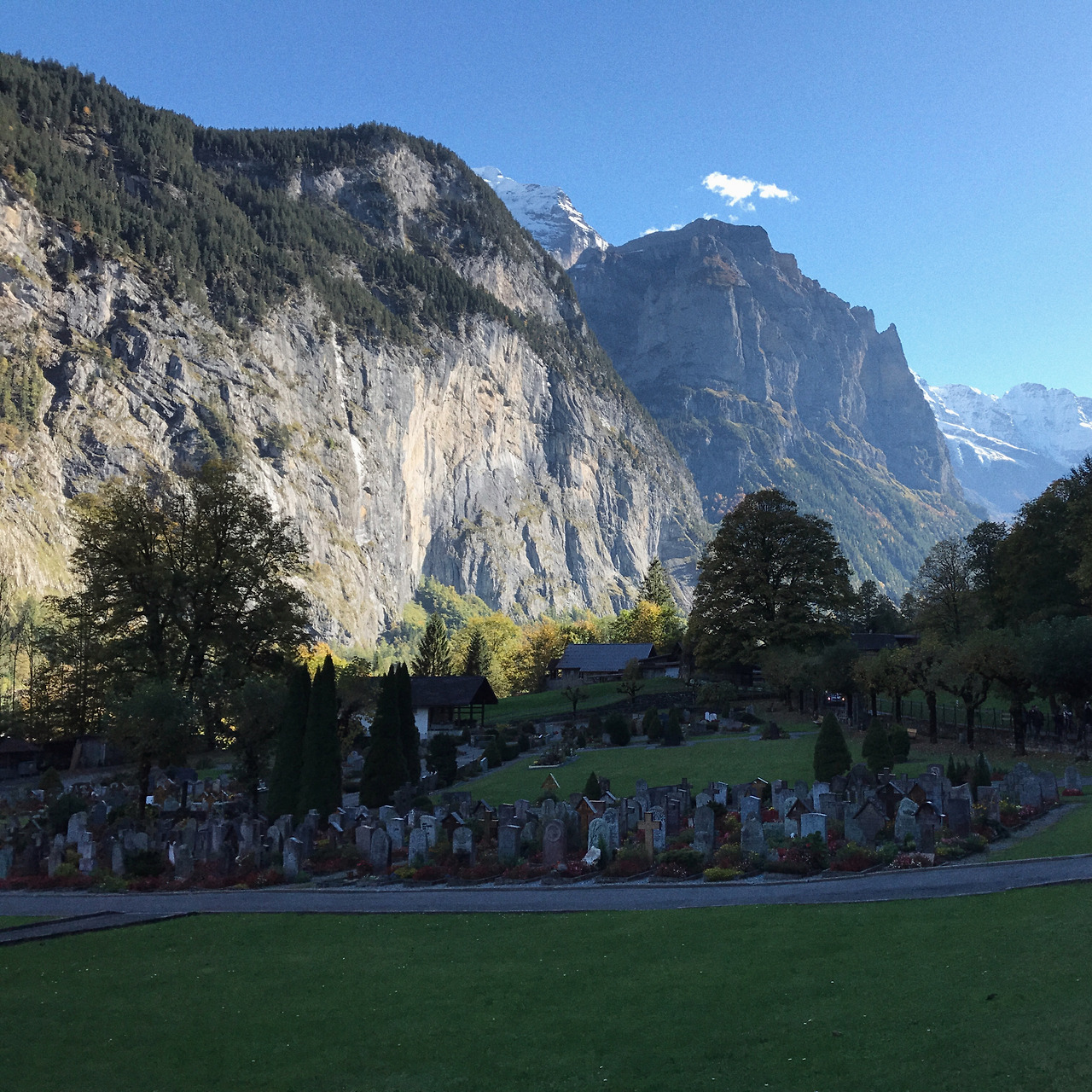 패러글라이딩 예약 시간까지 조금 여유가 있어서 라우터브루넨 역에 내렸다. 라우터브루넨에는 높은 절벽 위에서 떨어지는 멋진 폭포가 있다. 한적한 동네 길을 걸어 폭포 아래 벤치로 가서 잠시 휴식 시간을 가졌다. 라우터브루넨 역 안의 마트에는 스타벅스 자판기가 있어서 잠시 고향 도시의 맛을 보았다.