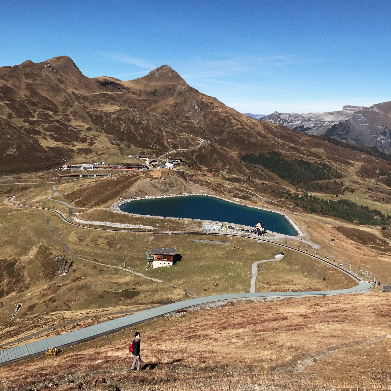 사실 꼭대기에서 딱히 할 건 없었고 우리는 아이거글렛쳐 역에서부터 클라이네샤이덱 역까지 걸으며 짧게나마 하이킹하는 기분을 내기로 했다. 풍경은 멋졌지만 경사가 심하고 돌길이 많아서 딸내미 가이드는 조금 당황했다. 내가 상상했던 건 하이디 느낌의 가벼운 산책이었는데. 열차 티켓만 있으면 아무 역에서 내렸다가 다시 탈 수 있기 때문에, 기차를 타고 조금 더 내려온 뒤(초록초록이 보일 때쯤) 걷는 것을 추천한다. 계속해서 비현실적인 풍경이 이어졌기 때문에 눈에 익숙해져서 좋은 줄을 잘 몰랐다.