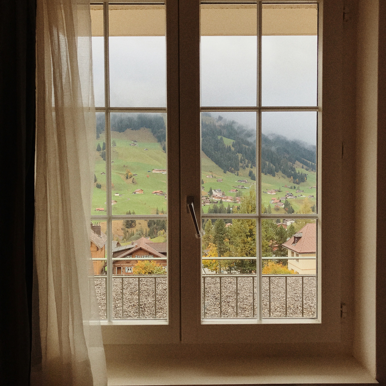 아델보덴의 호텔 침구는 강행군에 지친 자매를 숙면하게 했다. 12시 체크아웃 때까지 호텔을 충분히 즐기기로 했다. 아쉬웠던 건 어제까지만 해도 구름 한 점 없던 하늘은 구름이 낮게 깔려 회색빛으로 우중충했다. 이렇게 되면 "알프스 산자락 아래 수영장 인증샷"을 남길 수가 없었다. 그래도 뭐 어쩌겠나.