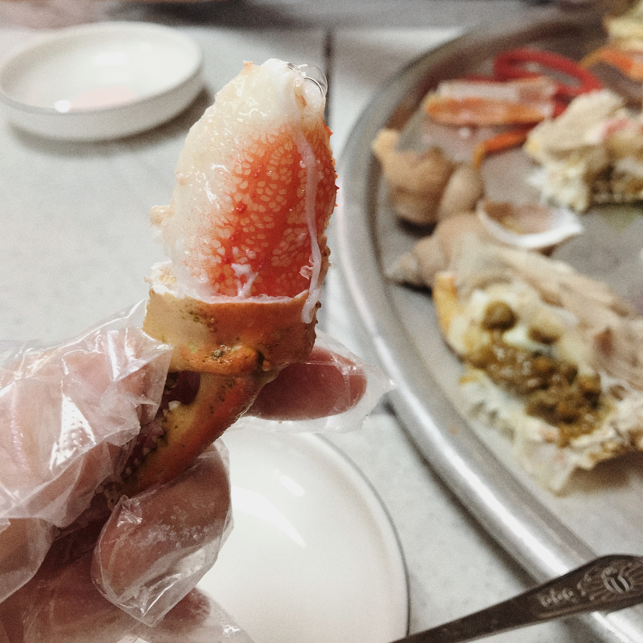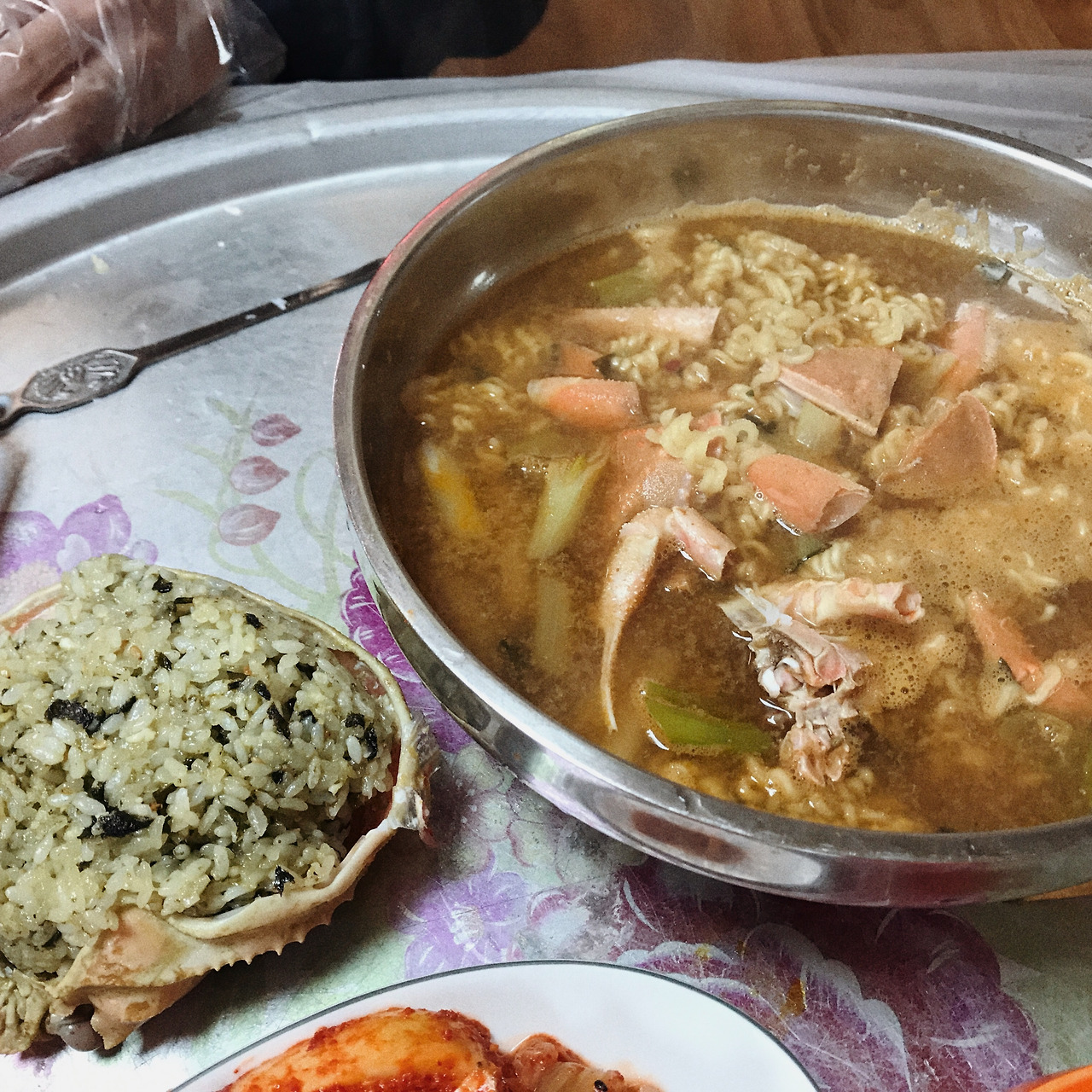 영덕에 오면 365일 대게가 있는 줄 알았다.(아니었다) 대게를 코스로 파는 식당들이 몰려있고 시장이 있는 강구항 대게거리는 흥정 쪼렙인 우리 부부에게는 너무나 어려운 곳이라 대신 축산항으로 갔다. 축산항 대게 식당을 검색하면 주로 00호선주집이 많이 나오는데 비수기에도 수족관에 게들이 그나마 있는 식당으로 들어갔다. 우리가 방문한 6월은 이미 대게 철이 다 지났을 때라 러시아산 박달대게가 주를 이루었고, 영덕 대게나 홍게가 조금 남아있었다. 대게보다는 게딱지 볶음밥이랑 라면이 더 먹고 싶었던 우리는 마음씨 좋은 사장님 추천대로 박달대게 1마리와 크기가 작은 영덕대게 1마리를 꽤 좋은 가격에 먹을 수 있었다.