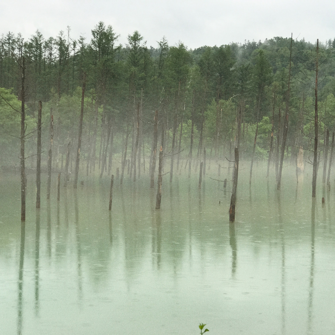 비가 너무 많이 온 직후라 기사님께서는 "'청의 연못(아오이이케)'이 아니라 '갈색 연못'일 것이다" 고 말씀하실 정도였고, 일부 도로는 비 피해 때문에 막혀있기도 했다. 다행히 '갈색 호수'까지는 아니었지만 사진에서 봤던 청량한 에메랄드 색 또한 아니었다. 대신 물안개가 자욱하게 껴서 신비스러운 느낌이 든다며 스스로 위안 했다. 왜 나뭇가지들이 연못 가운데 있는 걸까, 궁금했지만 가이드에게 미처 물어보지 못했다. 청의 연못을 구경하는 도중, 참지 못하고 비가 내리기 시작했다.