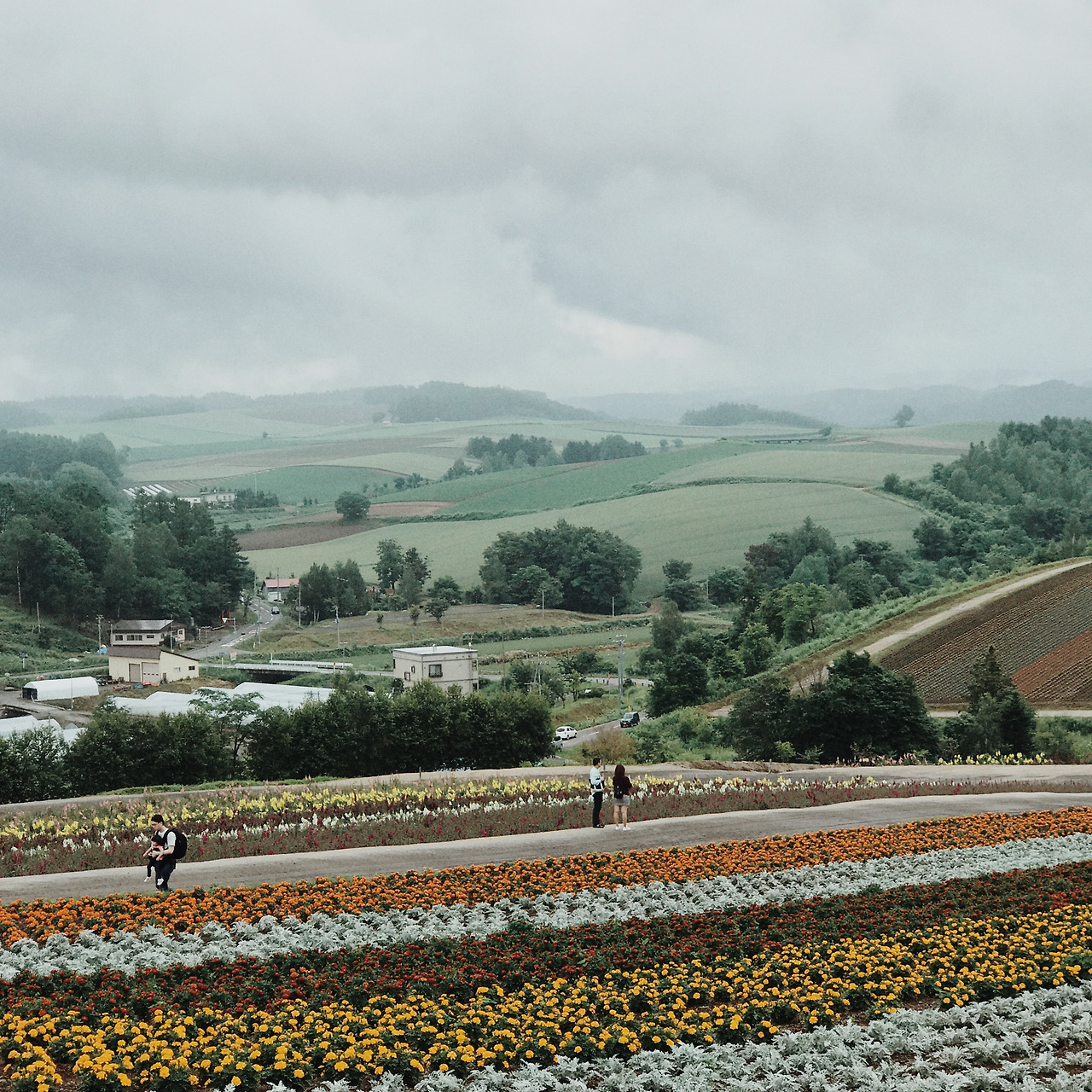 다음 코스는 사계채 언덕. 알록달록하게 심어 놓은 꽃 보다 멀리 보이는 연두색 들판이 좋았다. 홋카이도의 특산품인 옥수수를 하나 입에 물고 걷기 시작했다. 가이드분이 생옥수수를 추천했지만 시도하진 못했다. 트랙터나 코끼리 열차를 이용해도 되지만 주어진 시간에 걸어서 둘러볼 수 있는 크기였다. (이때까진 체력이 괜찮았다)