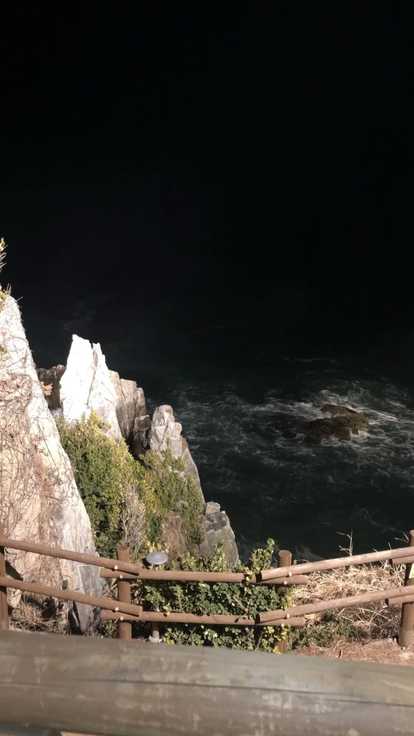 나는 바위나 동상같이 크고 억센 물체엔 원체 관심이 없는 사람이었다. 굳이 왜 사람들이 바위에 이름을 붙이고 보러 가는지에 대해 의문이었다. 하지만 실제로 보니 앤의 말이 맞았다. 거친 파도에 맞서 제자리를 지키고 있는 촛대바위는 물론이고, 그 주변의 다른 바위들과 어우러지는 밤의 바다가 멋있었다. 이날의 밤바다는 거센 파도가 일었다. 억겹의 시간 동안 파도와 바람에 깎이고 깎여나간 바위의 모습들이 그려졌다. 홍에게 내가 본 겨울의 추암은 사납고 험한 느낌이라고 말하자, 홍은 본인이 찍은 드론 영상을 보여줬다. 여름의 추암은 또 다른 모습이었다. 평화롭고 고요했다.