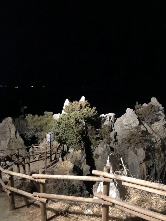 논골담길에서 조금 더 올라가 동해의 밤을 한참 바라보는데, 홍이 반대쪽을 향해 팔을 쭈욱 뻗었다. 저편에 있는 산에 가면 뷰가 예쁘다는 말을 해왔다. 그는 10분이면 반대편까지 간다고 했다. 우리는 당연히 좋다고 했고, 홍이 운전하는 차에 몸을 실었다. 달리는 차 안에서 홍과 앤이 ‘추암 촛대바위’ 를 얘기했다. 생소한 이름에 나는 이것저것 질문을 했다. 앤은 추암 촛대바위가 정말 멋있다고 말했고, 홍은 촛대바위를 모르면 지금 가보자며 행선지를 바꿨다.