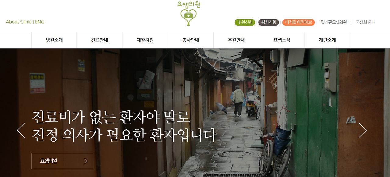 그런 그가 오랜 갈등과 고민 끝에 뜻이 맞는 사람들과 힘을 합쳐 만든 병원, 가난하고 아픈 사람도 마음 편하게 치료를 받을 수 있는 무료 병원을 꿈꾸며 만든 병원이 바로 아래 보이는 요셉 의원이다.