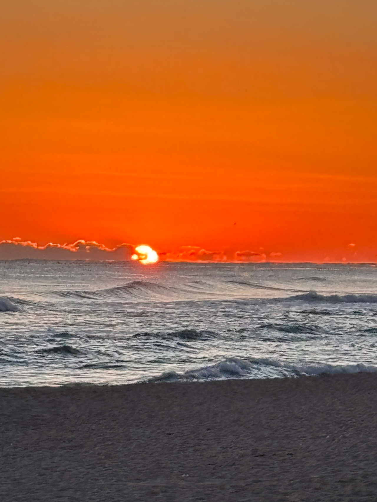 엄마와 나는 일출과 일몰을 좋아하는데, 특히 바다에서 ‘까꿍’ 하며 솟아오르는 해를 참 좋아한다. 짙은 주홍빛에서, 점차 옅은 주홍빛으로 변하는 하늘을 바라보며, 빛이 새어 나오는 곳을 향했다.