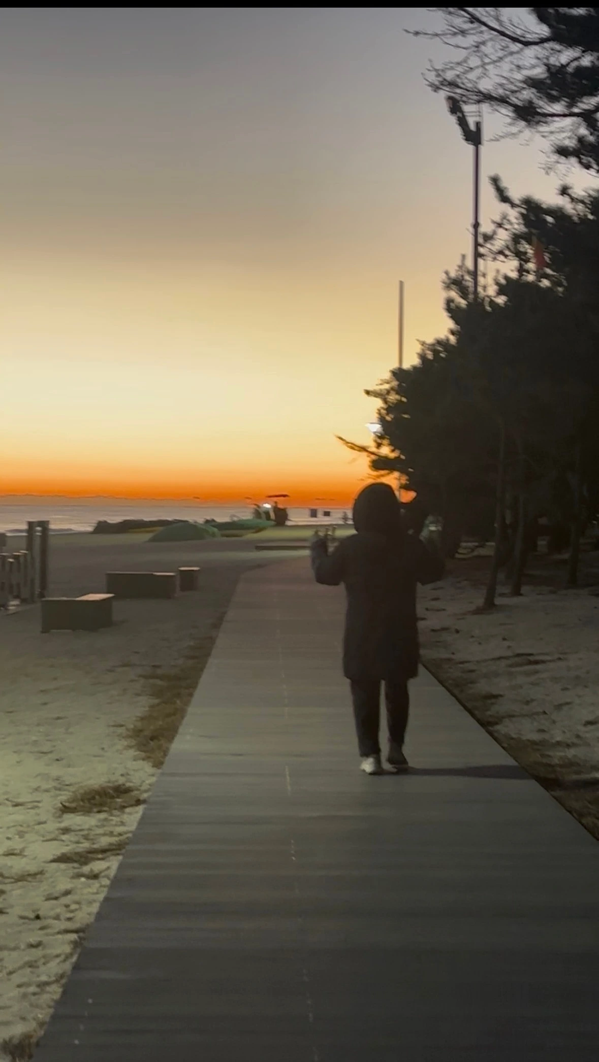 아빠 생신을 맞아 아빠가 좋아하는 바다를 실컷 볼 수 있는 강릉에서 시간을 보냈다. 다음날 아침, 일찍 일어나 숙소에서 여명이 밝아오는 것을 지켜봤다. 해가 숙소에서 시선이 잘 닿지 않는 먼 곳에서 떠오르는 것 같아 엄마와 해를 찾아 나섰다.
