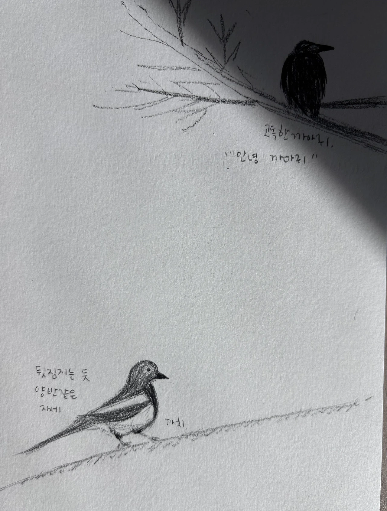 요즘 산책을 하면 까마귀와 까치를 자주 보게 된다.