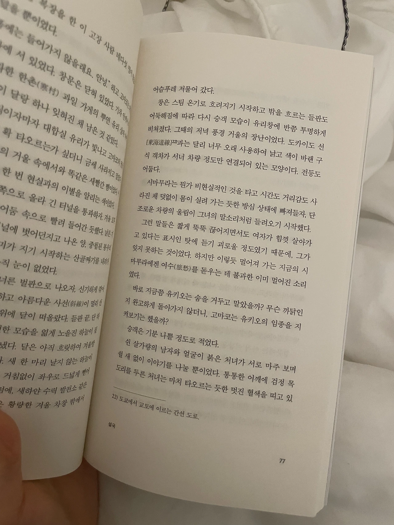 주변에 내가 설국을 읽는다고 했더니 다들 반응이 ‘아 그거 유명한 책이잖아, 우리 집 서재에도 있어. 근데 읽어본 적은 없어’