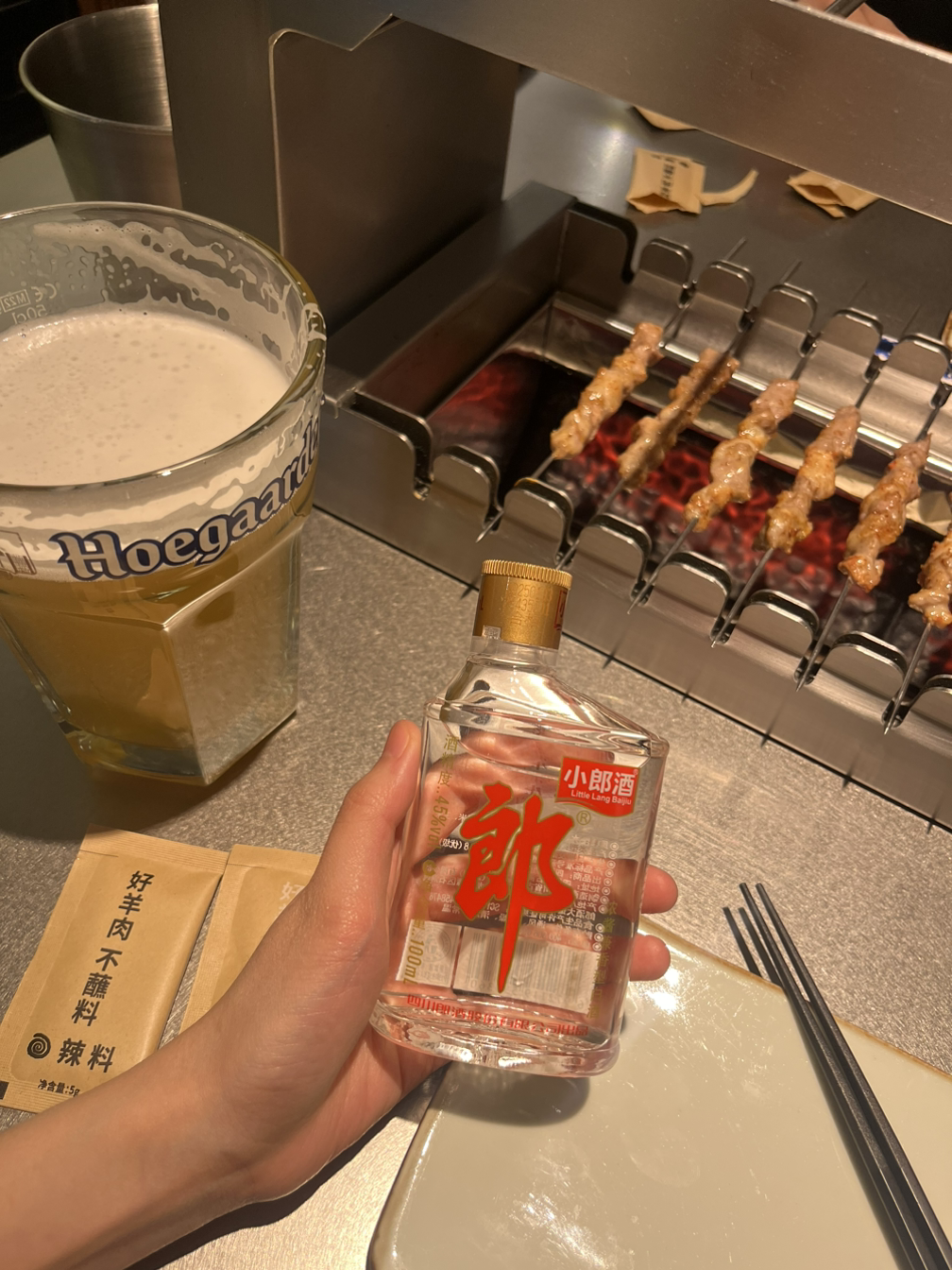 헌지우이치엔의 장점은 양꼬치뿐만 아니라 여러 가지의 꼬치를 화로에 구워 먹을 수 있다는 점이다. 대표적으로 새우꼬치도 개별 주문이 가능한데, 버터의 녹진한 맛이 녹아든 새우 구이가 지금도 잊히지 않을 정도다. 이 날은 빠이주(백주)를 먹기 위해 별러왔던 날이므로 얼굴보다 큰 잔에 나온 호가든 생맥주와 함께 45도짜리 빠이주도 주문했다. 평소 마시는 연태고량주와 비슷하게 깔끔한 맛이었다. 마지막 식사 메뉴로는 중국식 냉면을 먹었는데, 호불호가 있는 음식이라더니 함흥냉면에 비해서도 매우 짜고 자극적인 맛이었다. 물론 나는 마음에 들었다. 헌지우이치엔은 여러 가지 꼬치 메뉴와 사이드를 골라 먹는 맛이 좋아서 단순 음식점이라기보다 정말 여행 온 기분을 한껏 느낄 수 있는 장소인 것 같아 더 좋았다. 다음에 상해를 방문하더라도 꼭 다시 오고 싶은 중국판 또간집이다.